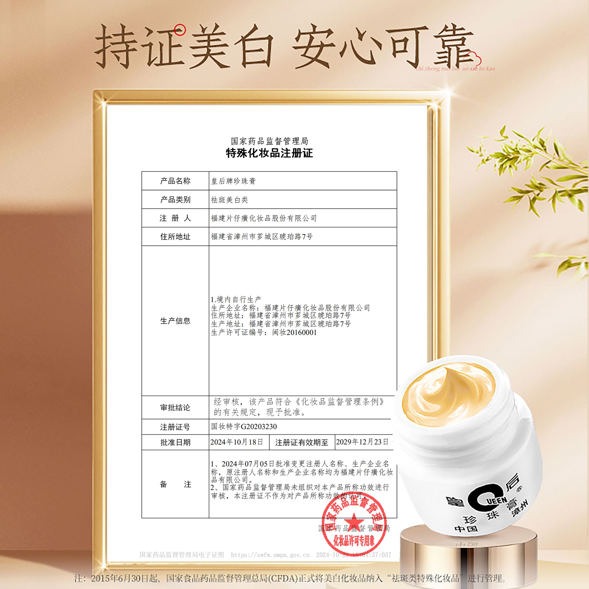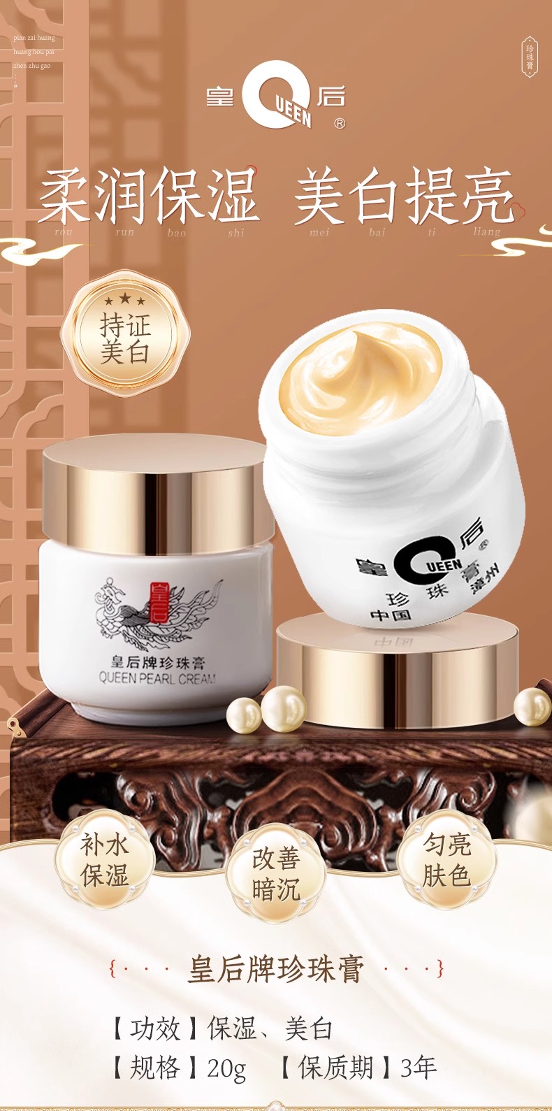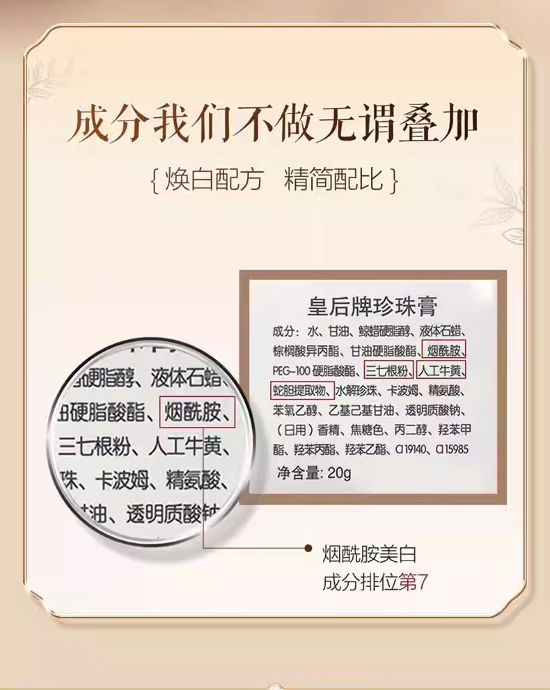 【片仔癀护肤系列】皇后牌美白祛斑珍珠膏20g紧致抗皱人参霜15g/48g