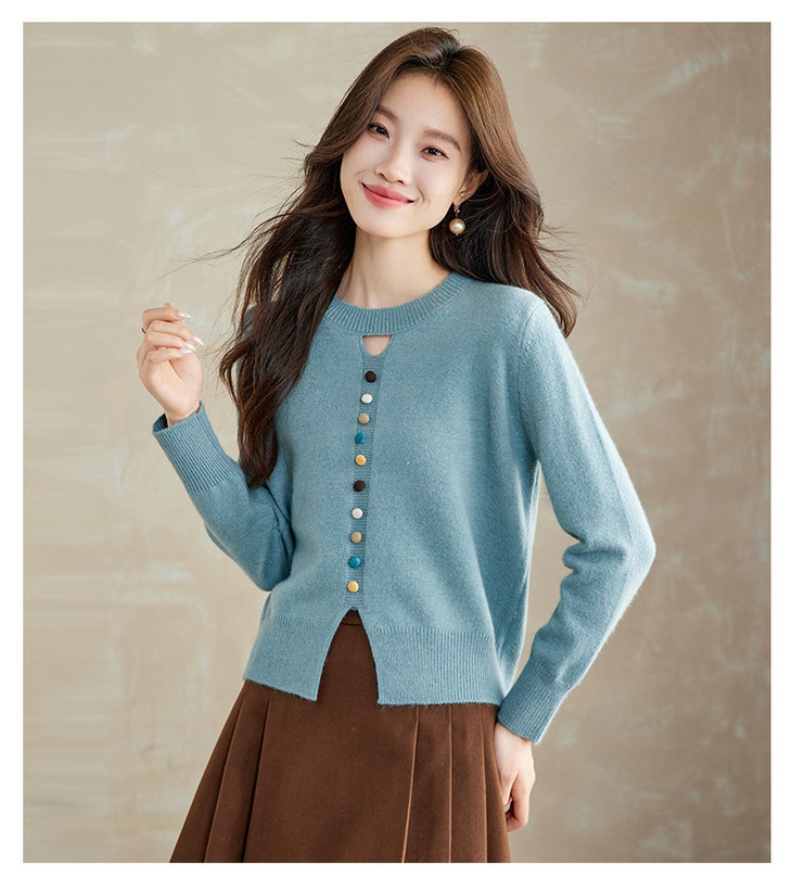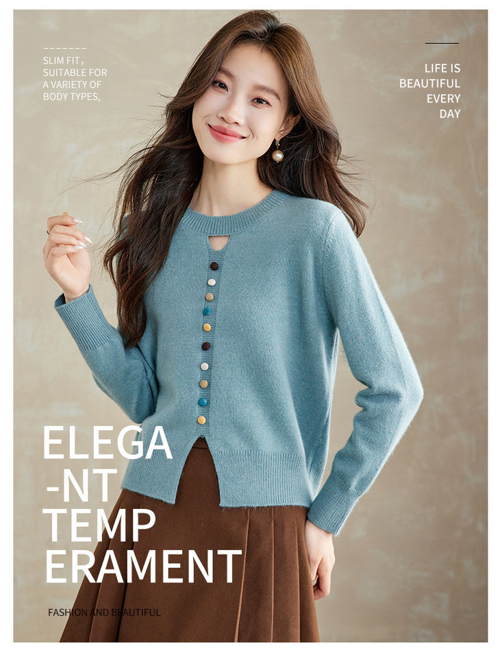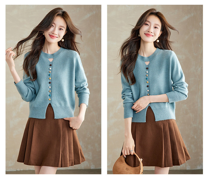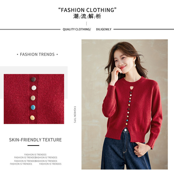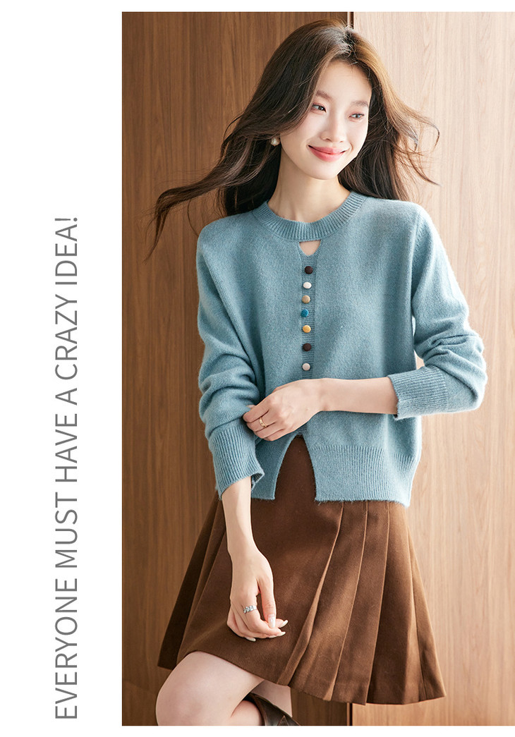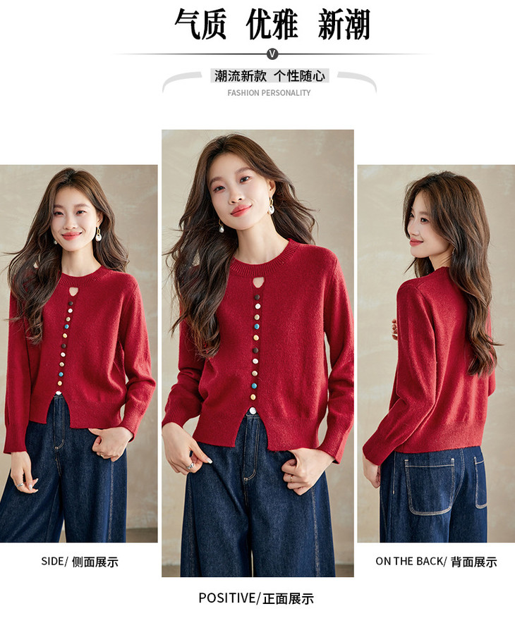 设计感镂空软糯圆领毛衣,慵懒风彩色纽扣套头针织衫上衣CC-XFY-3203