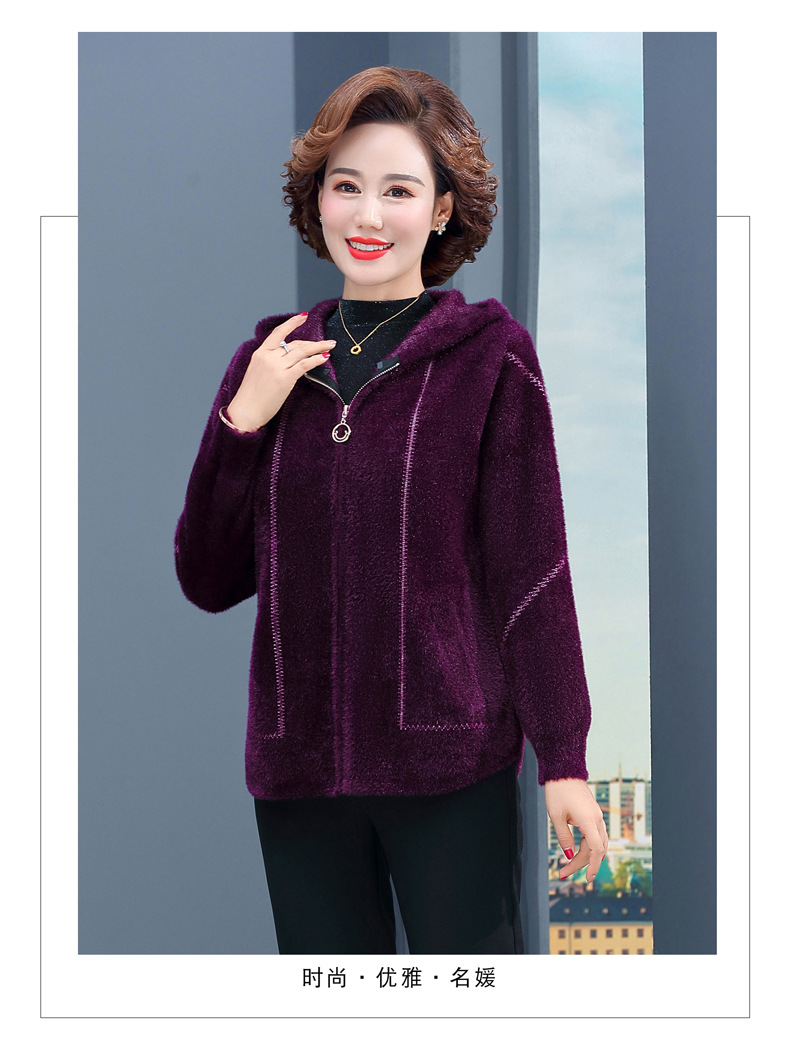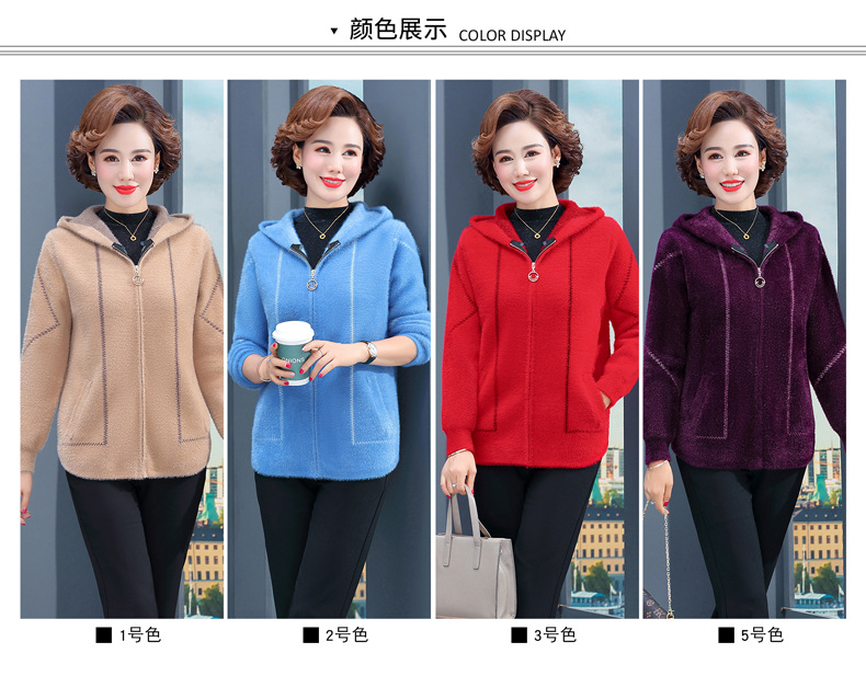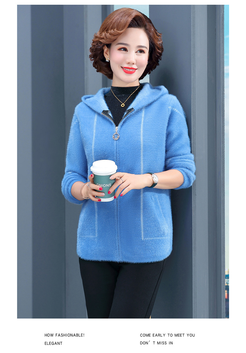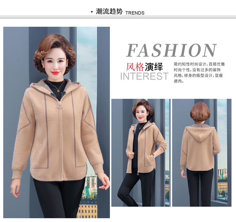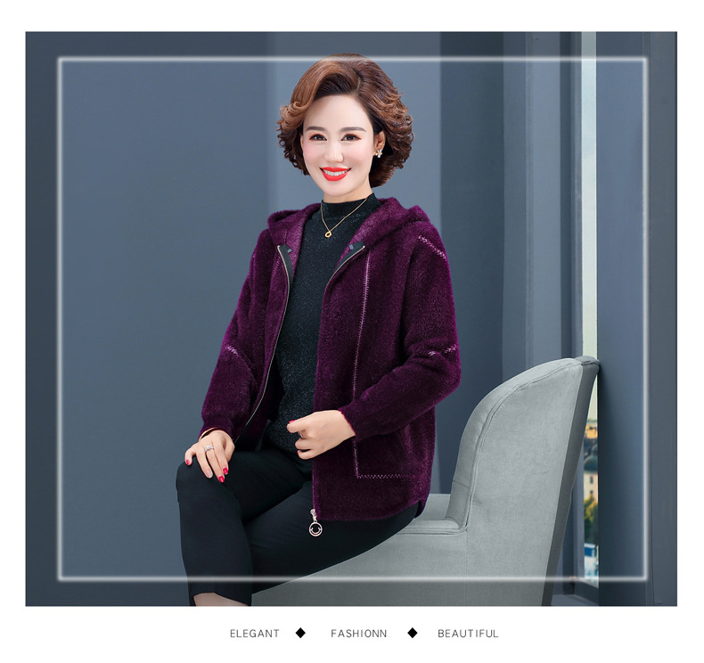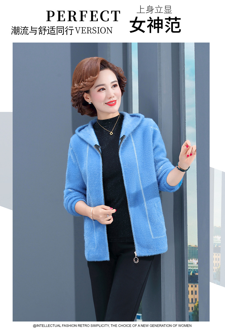 YSM-66P-9903妈妈气质仿貂绒外套女秋冬装中老年洋气短款宽松针织开衫