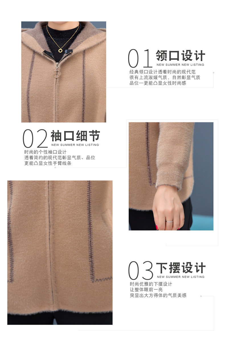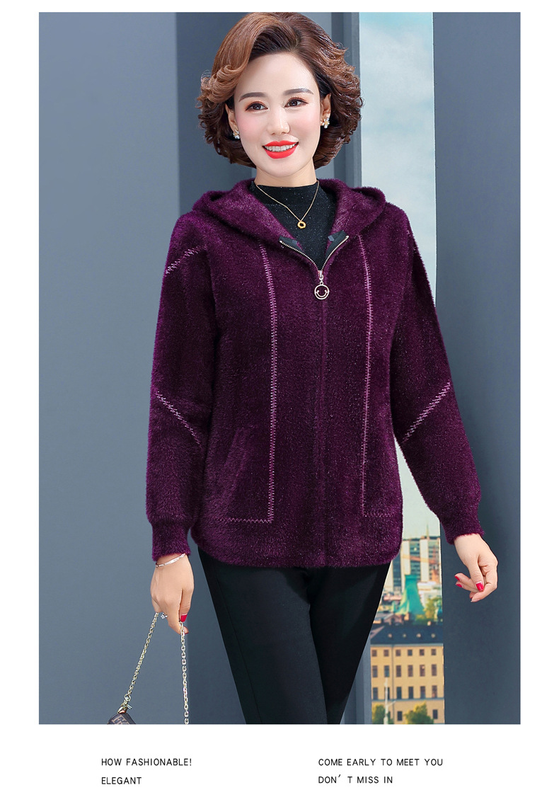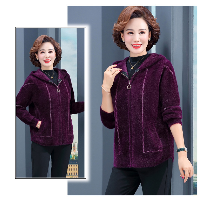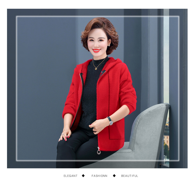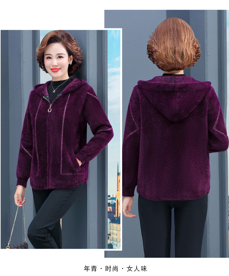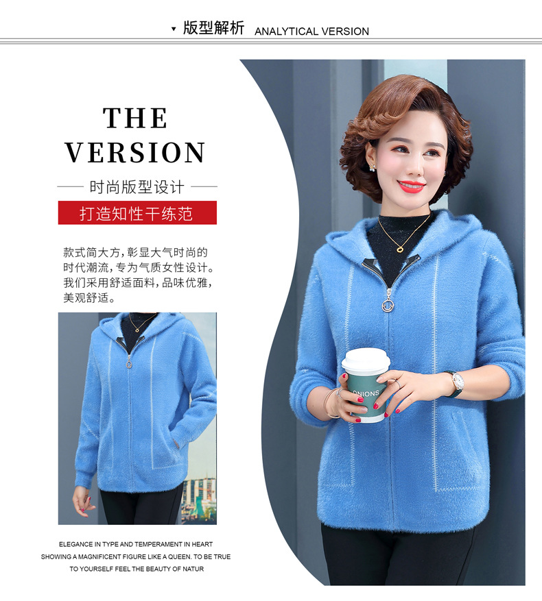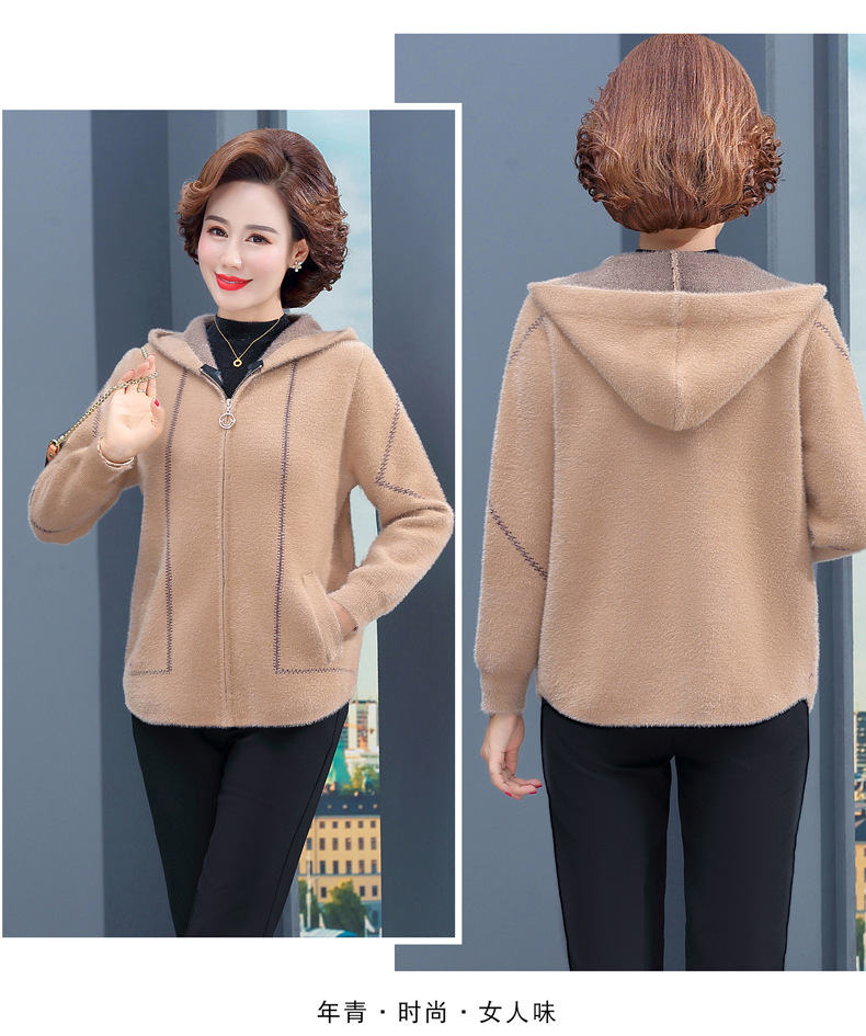 YSM-66P-9903妈妈气质仿貂绒外套女秋冬装中老年洋气短款宽松针织开衫