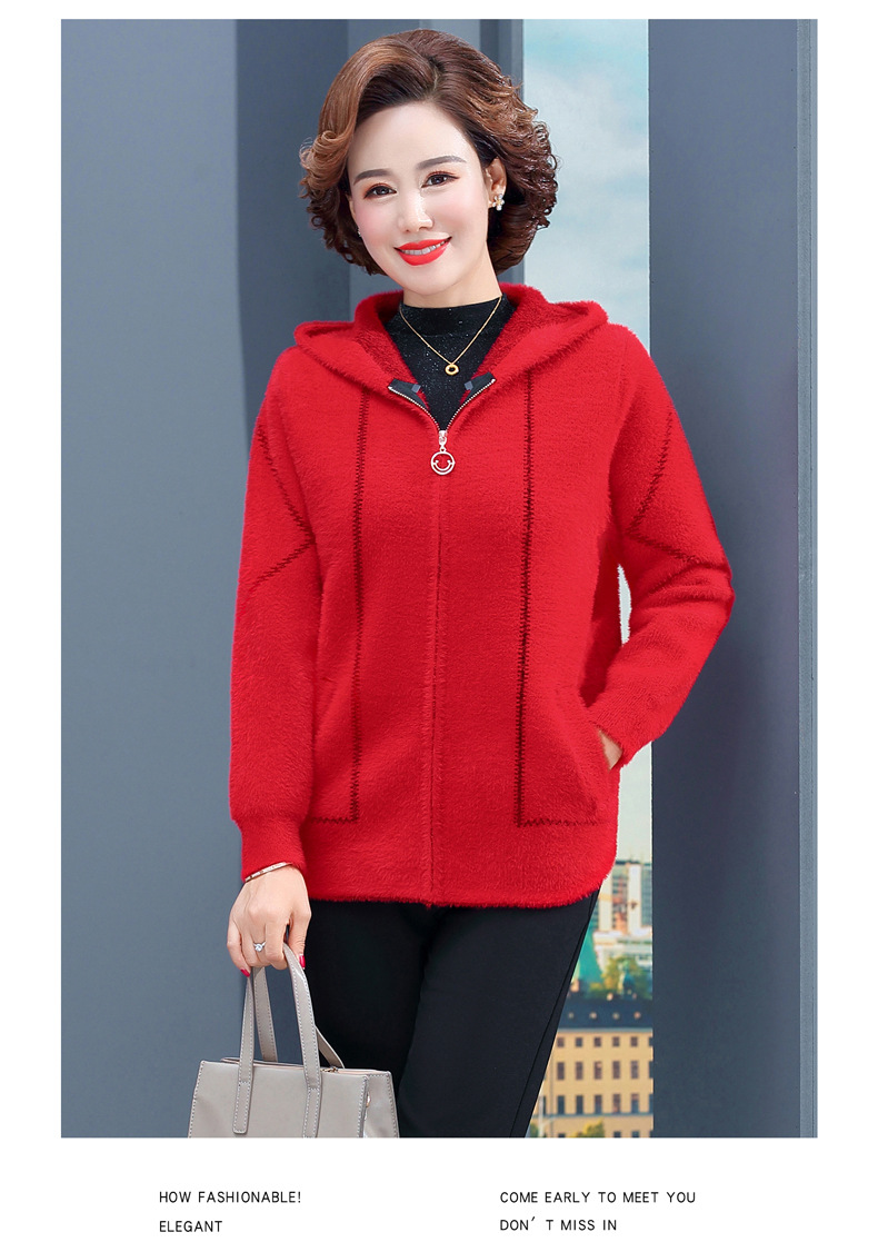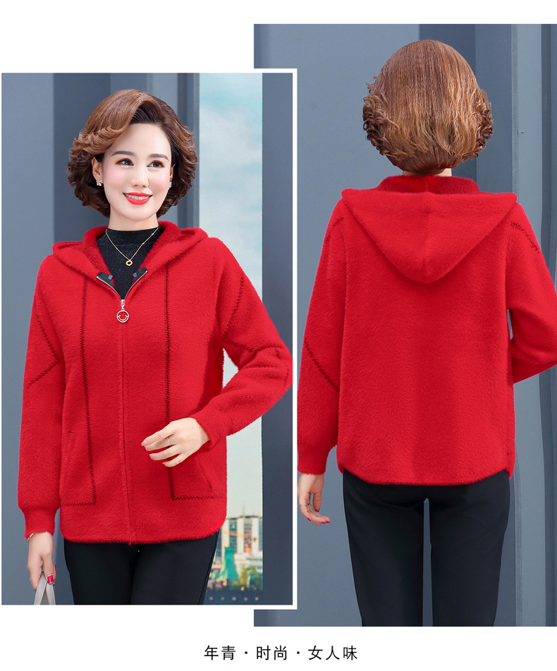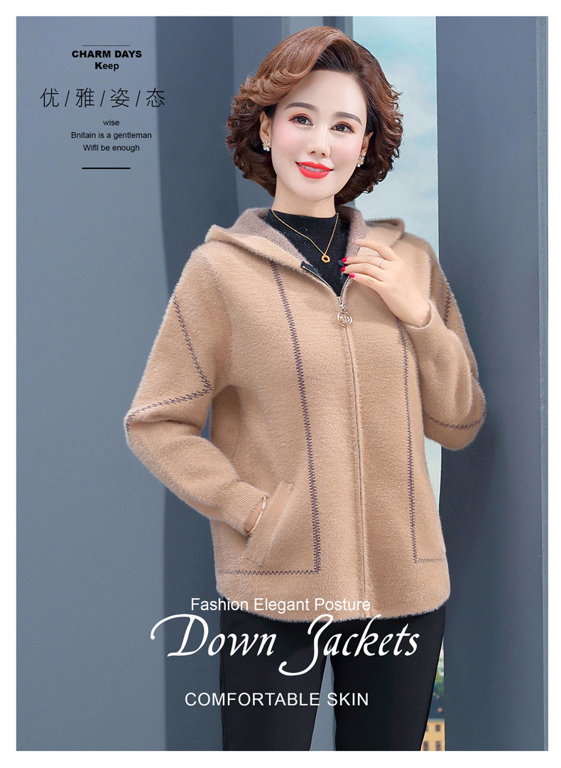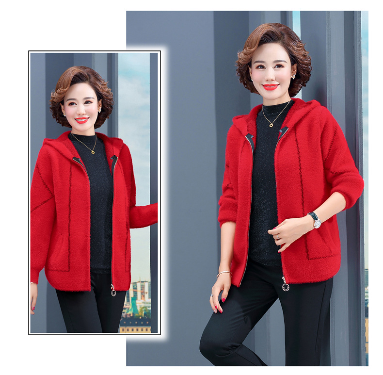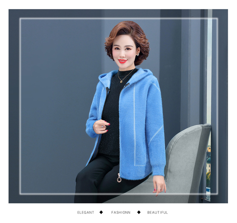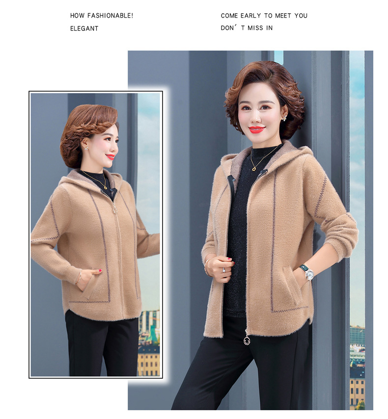 YSM-66P-9903妈妈气质仿貂绒外套女秋冬装中老年洋气短款宽松针织开衫