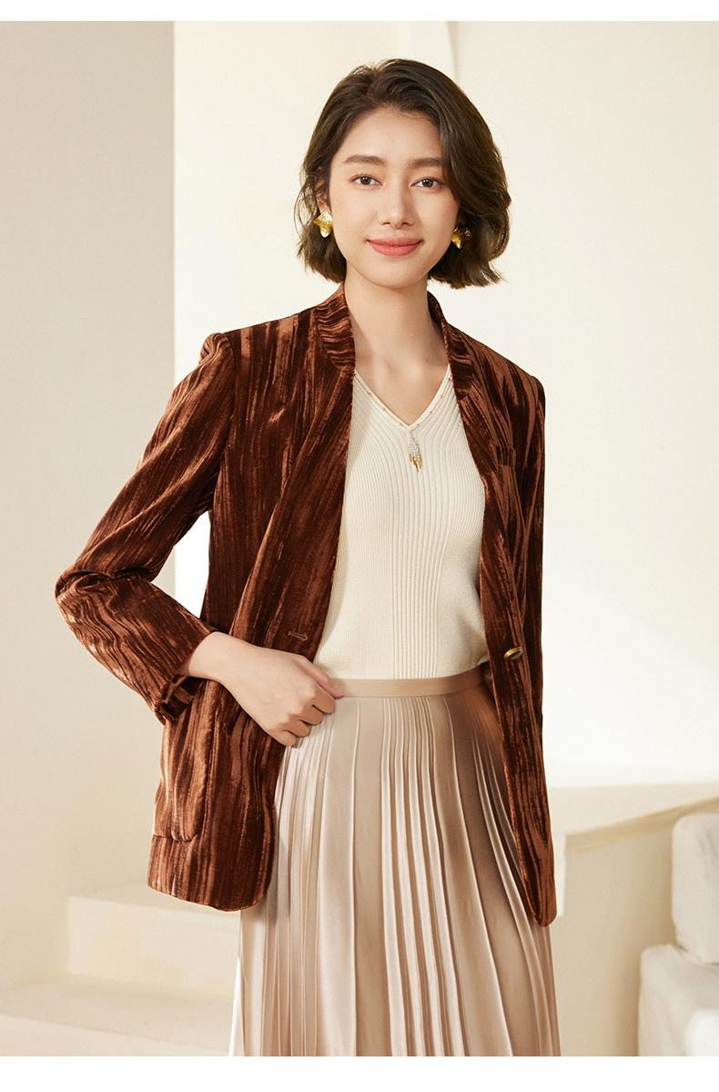 乔万尼初秋外套新品短复古丝绒西装外套EM3B385