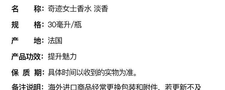 法国 兰蔻(LANCOME)奇迹女士EDP 香水30ml【香港直邮】
