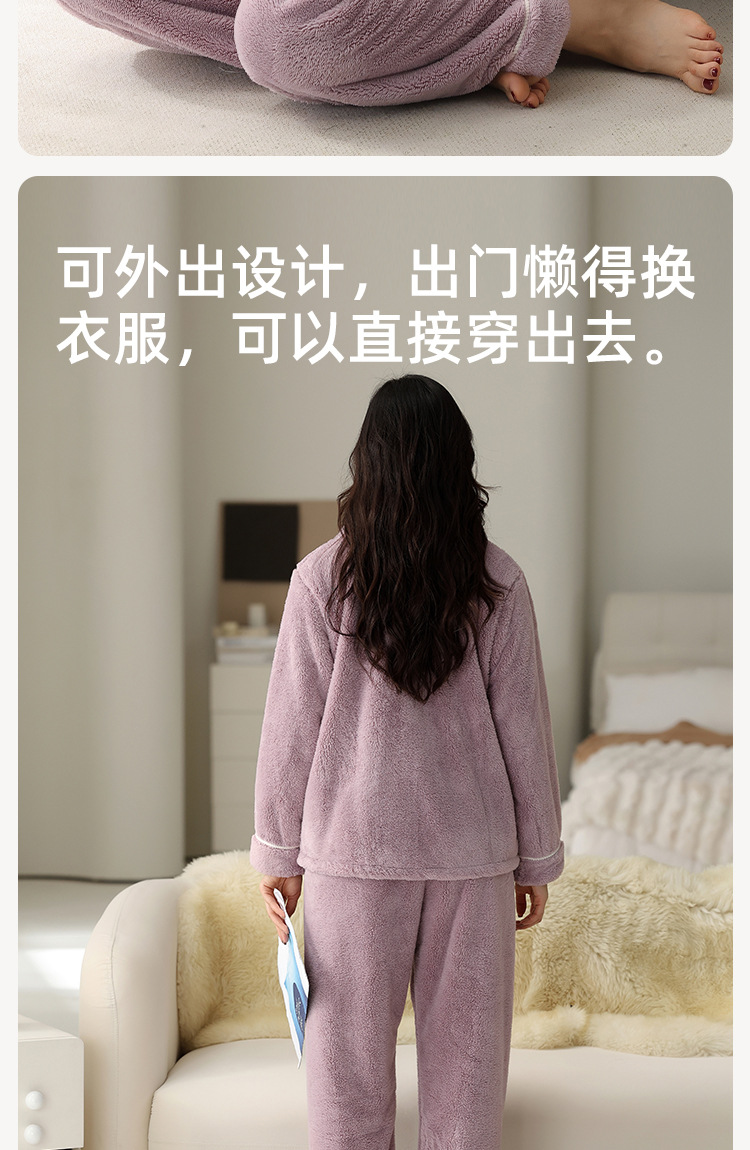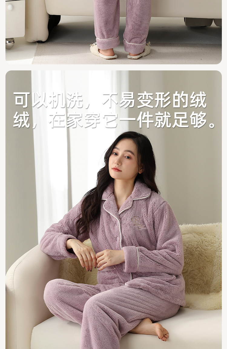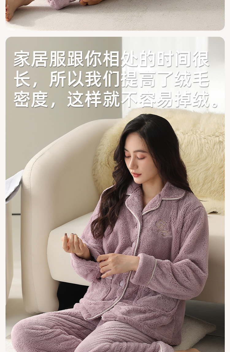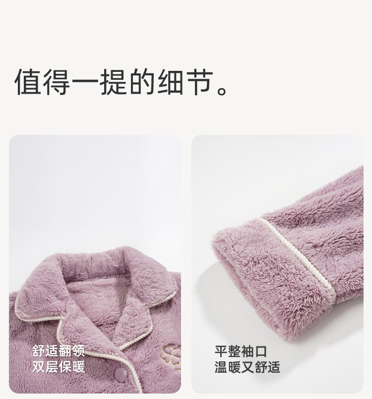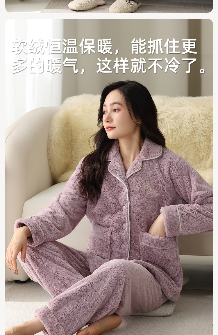 雀说珊瑚绒睡衣女款冬季保暖法兰绒中年家居服秋冬款加厚加绒大码套装ALW888