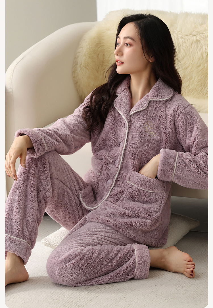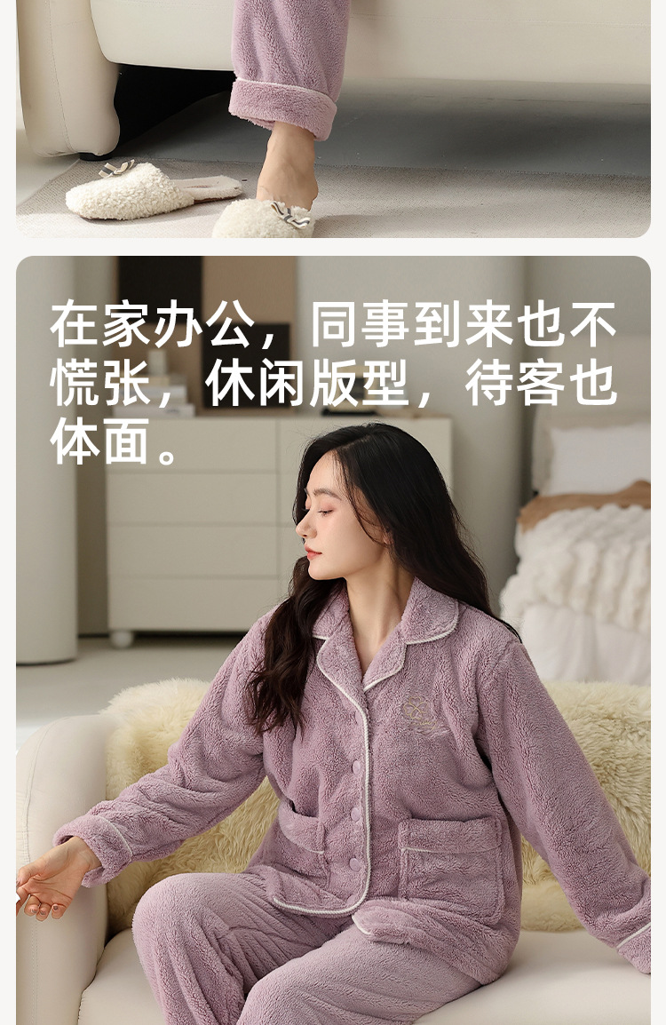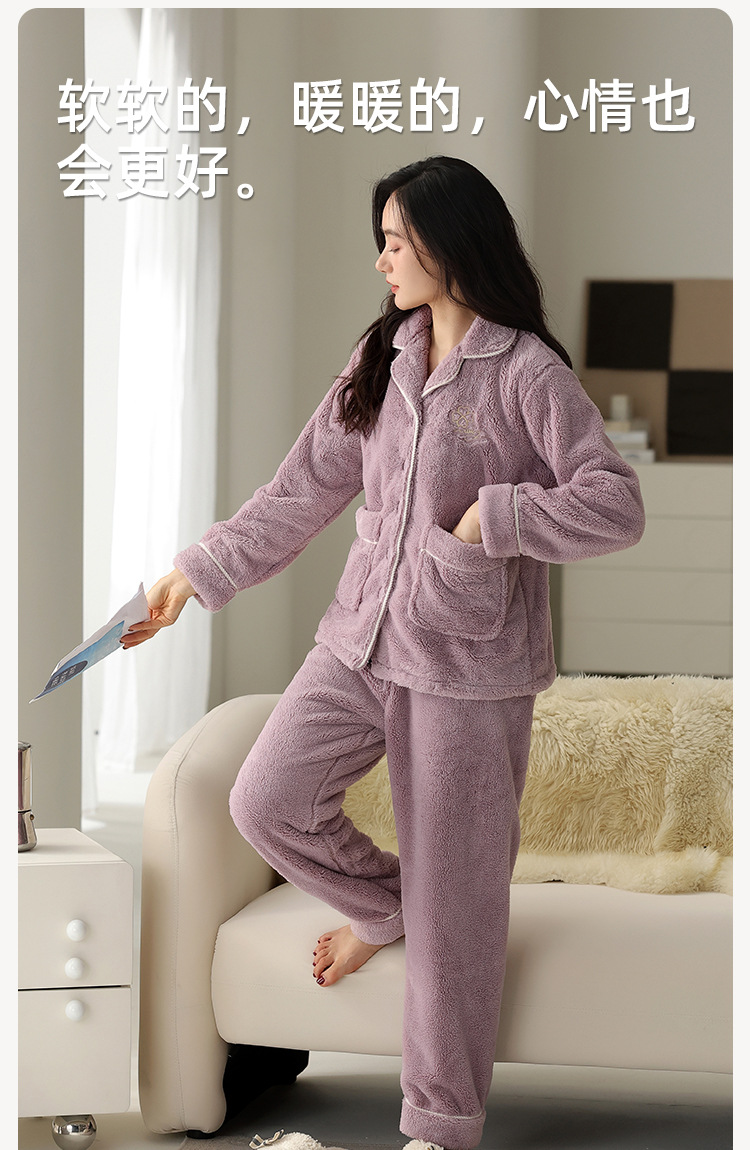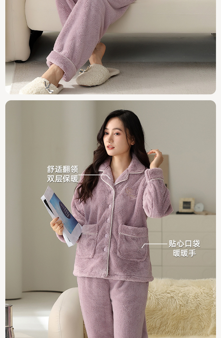 雀说珊瑚绒睡衣女款冬季保暖法兰绒中年家居服秋冬款加厚加绒大码套装ALW888