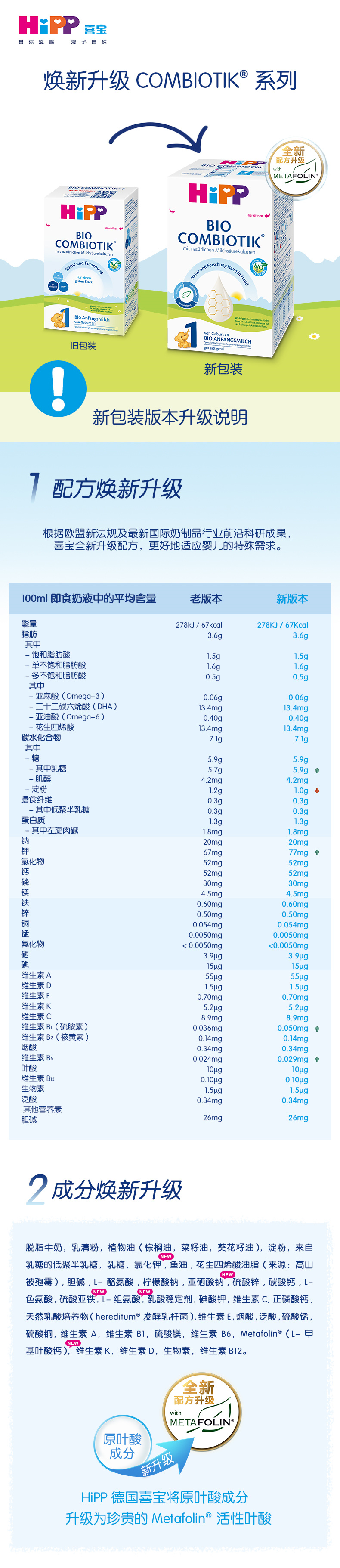【包邮含税1段】德国 喜宝(HiPP)益生菌奶粉 1段600g