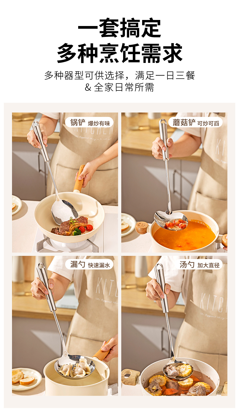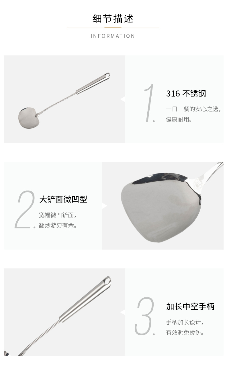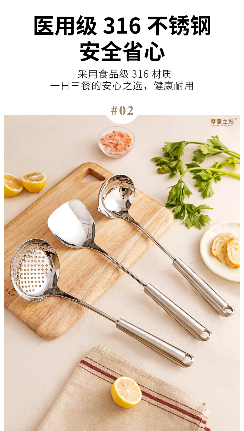 摩登主妇316不锈钢锅铲食品级家用炒勺汤勺煎铲厨具套装炒菜铲子