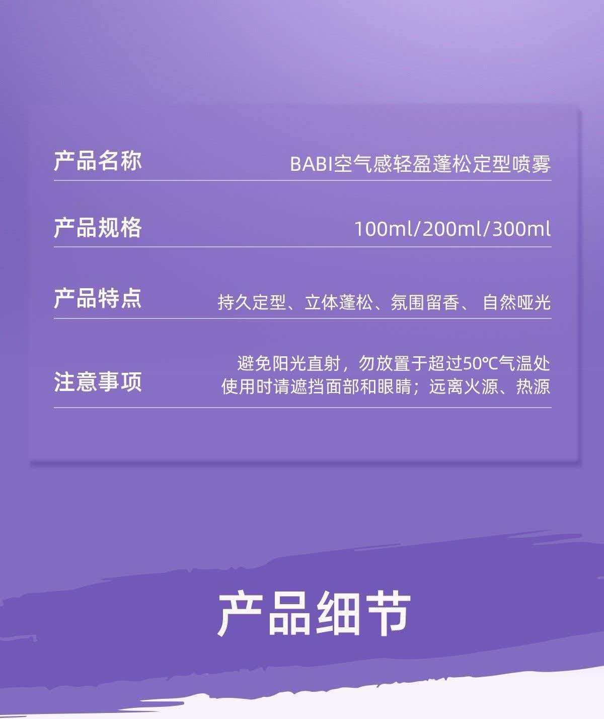 【热卖款】BABI定型喷雾发胶男女士雾蓬松高颅顶定型喷雾120ml
