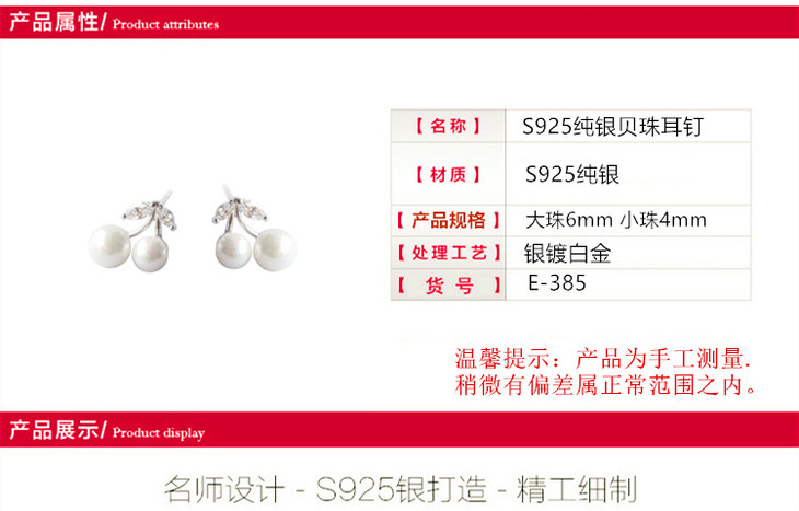 TJ-BA-E-385樱桃耳环几何韩版时尚珍珠耳钉TZW