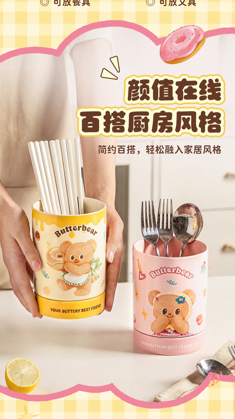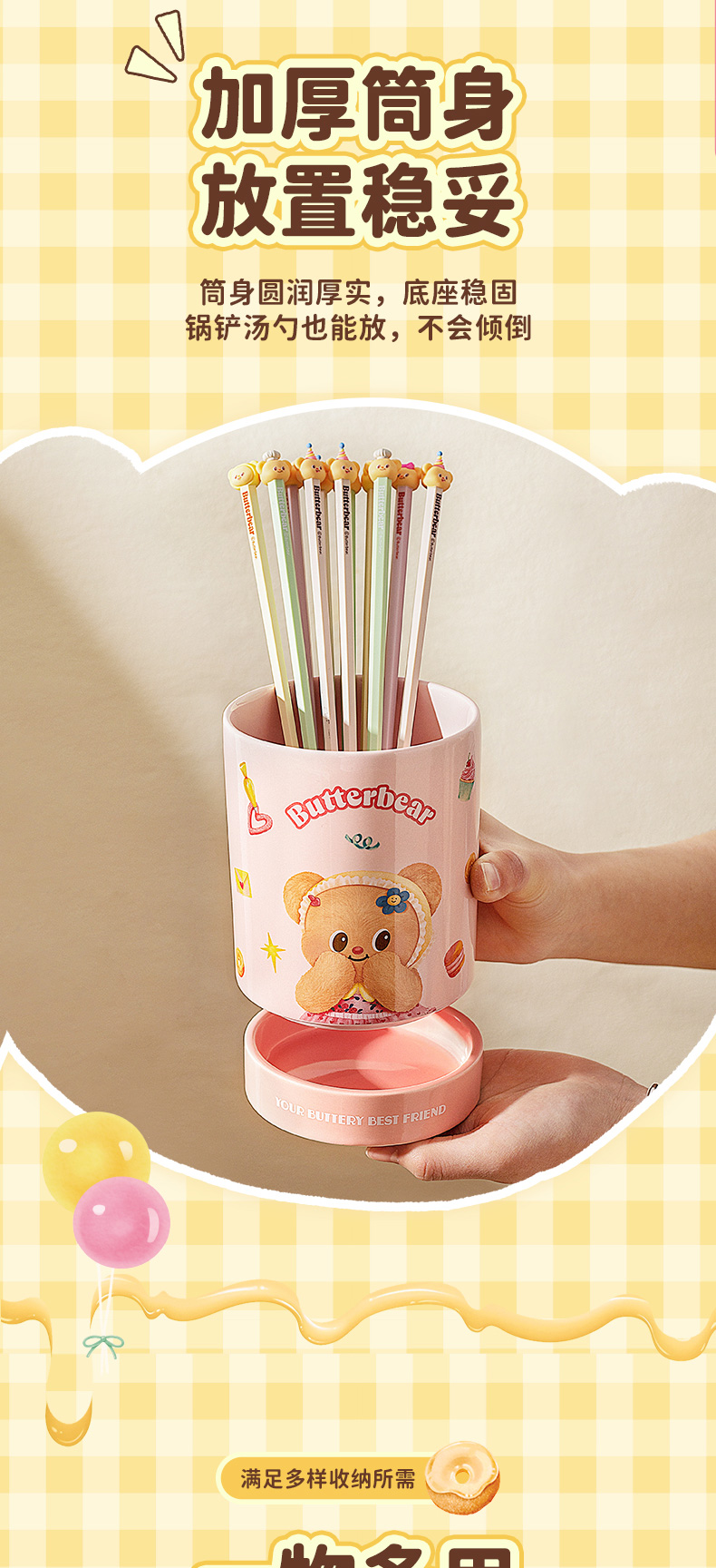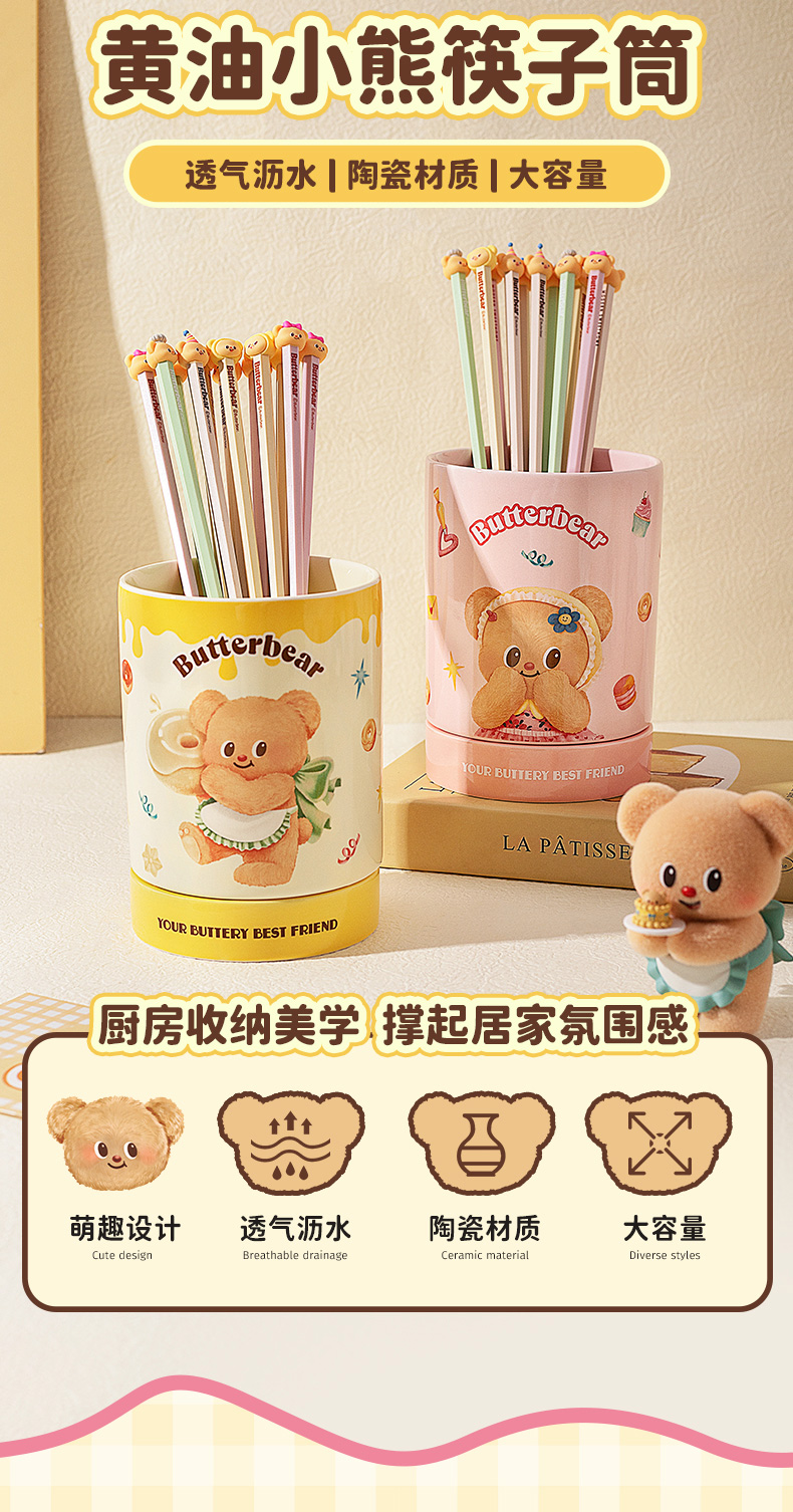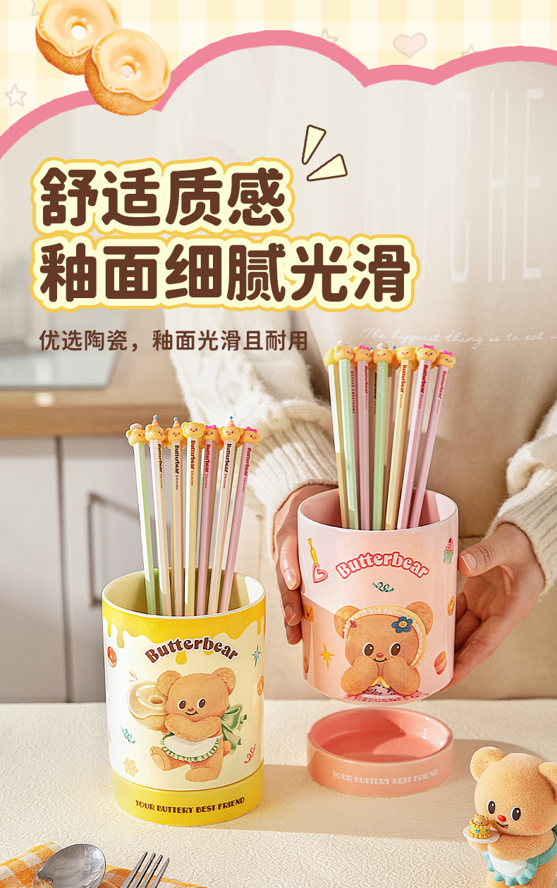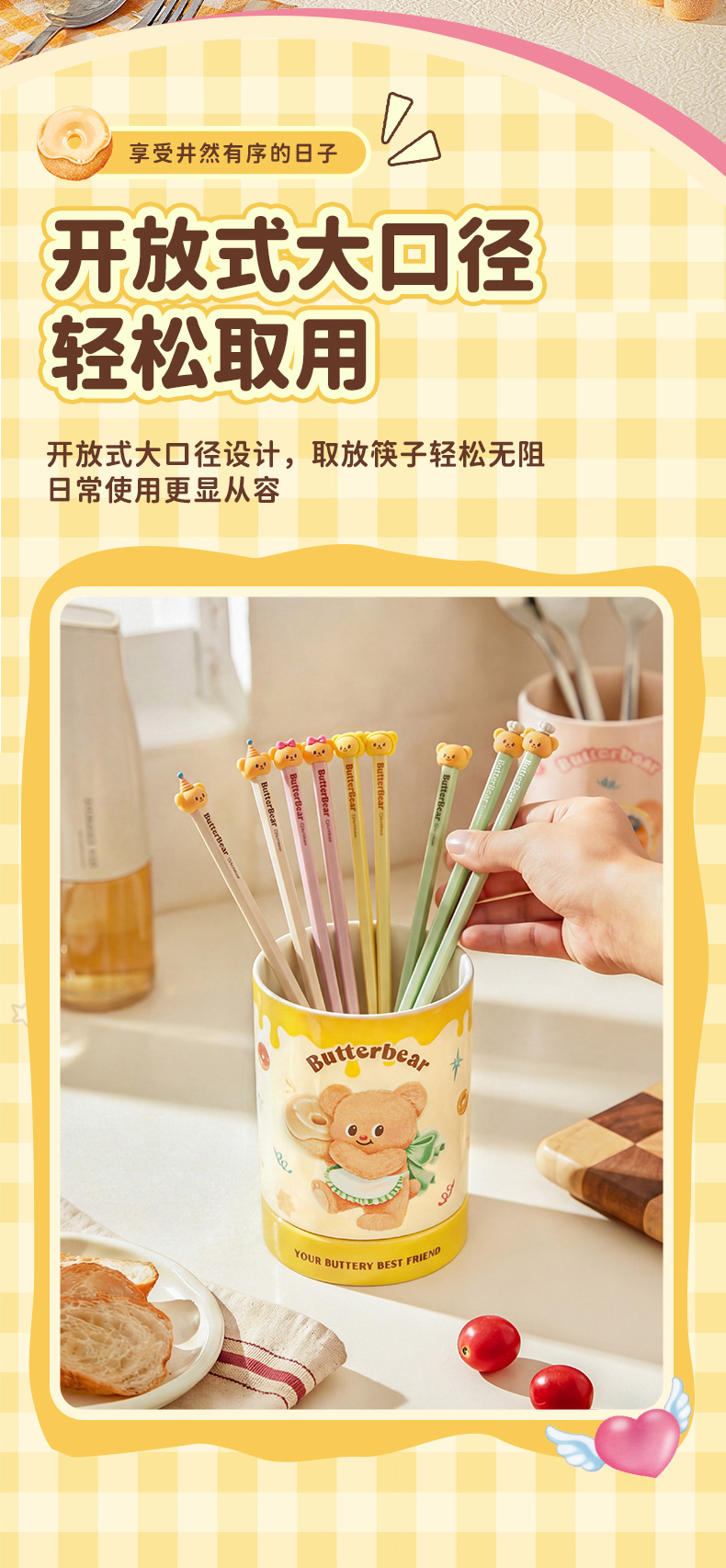 摩登主妇黄油小熊筷子筒 透气沥水|陶瓷材质|大容量