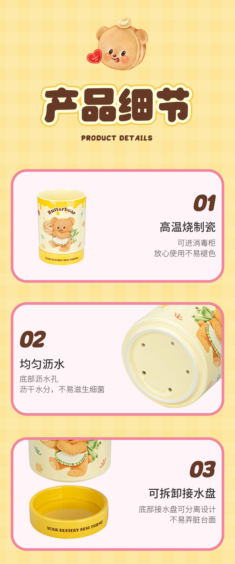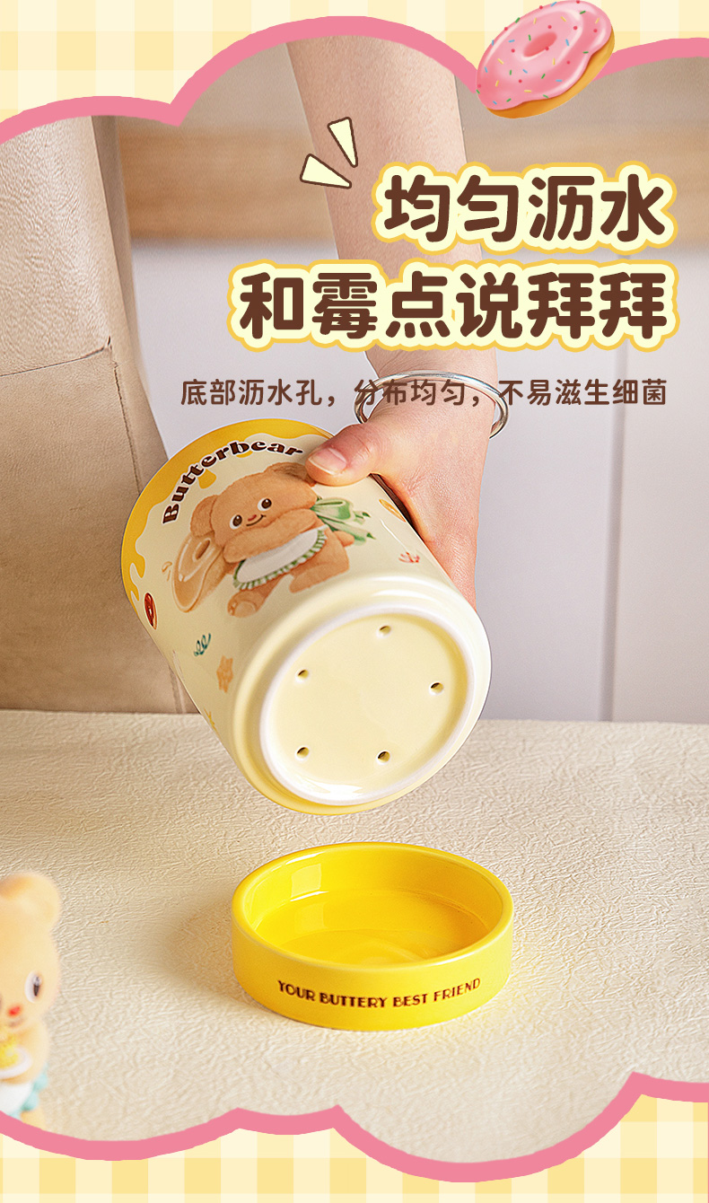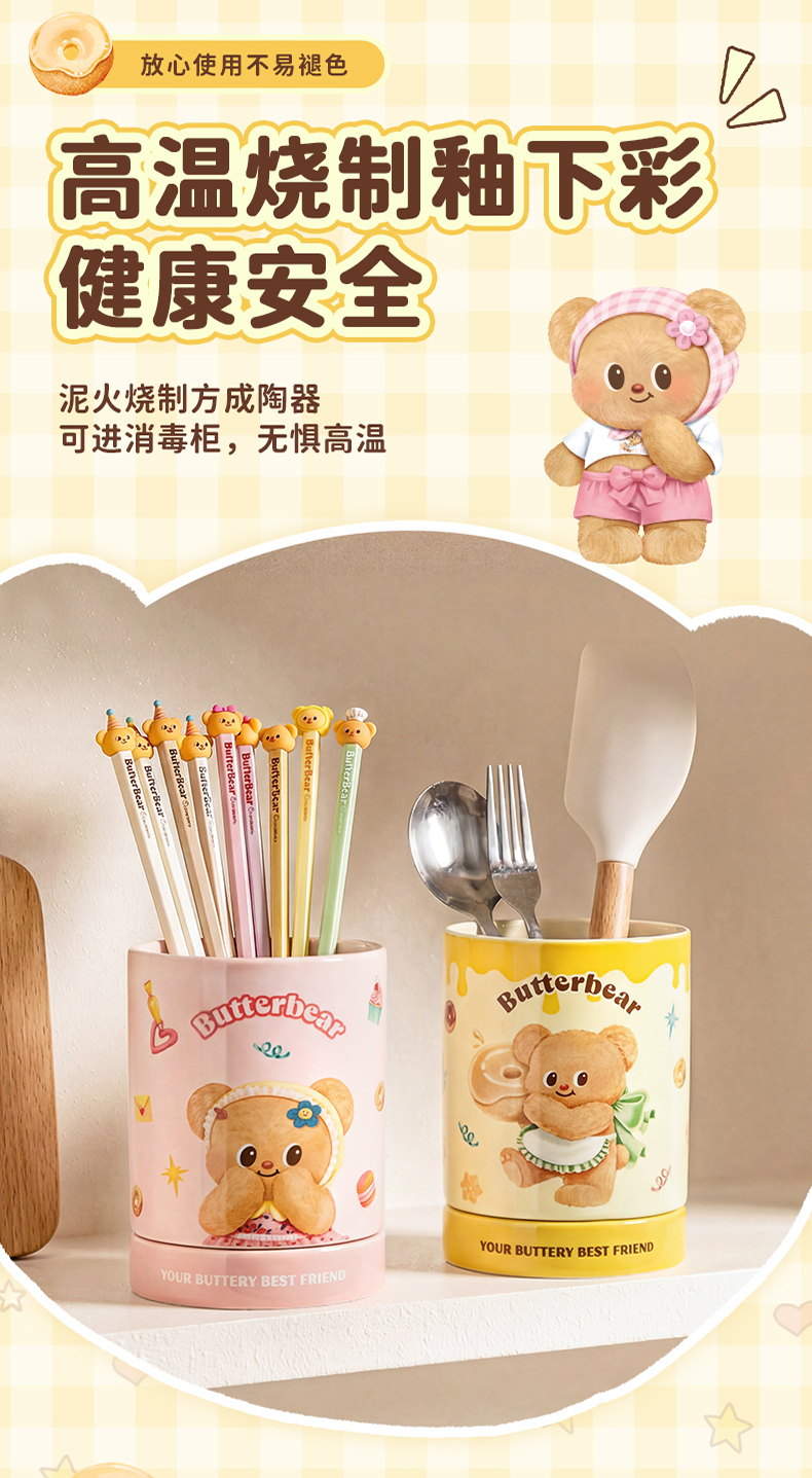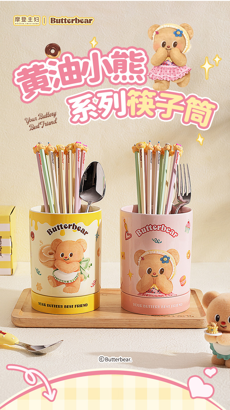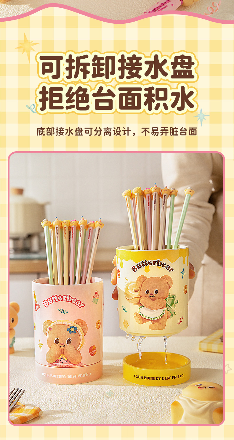 摩登主妇黄油小熊筷子筒 透气沥水|陶瓷材质|大容量