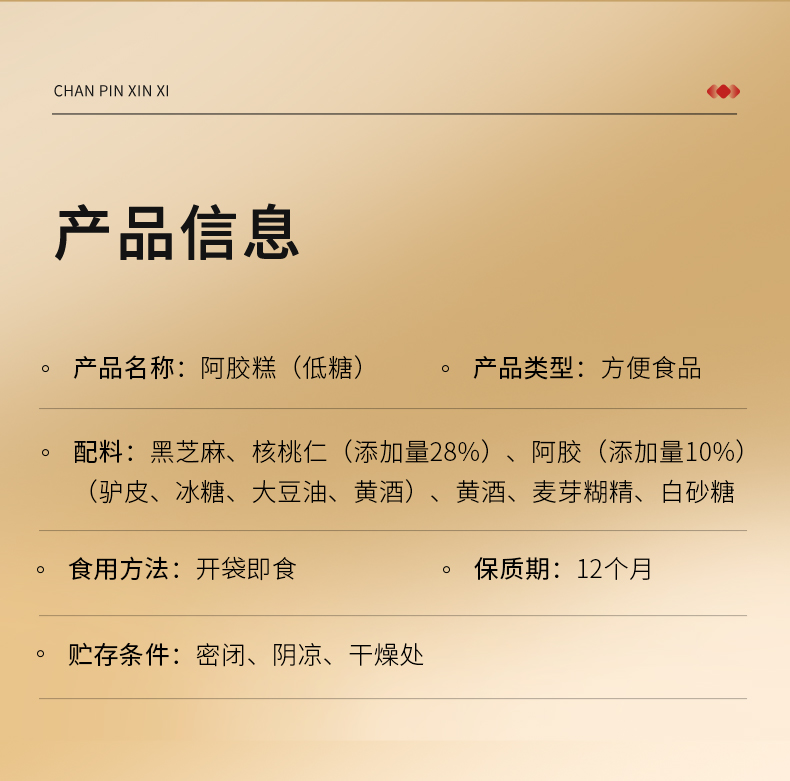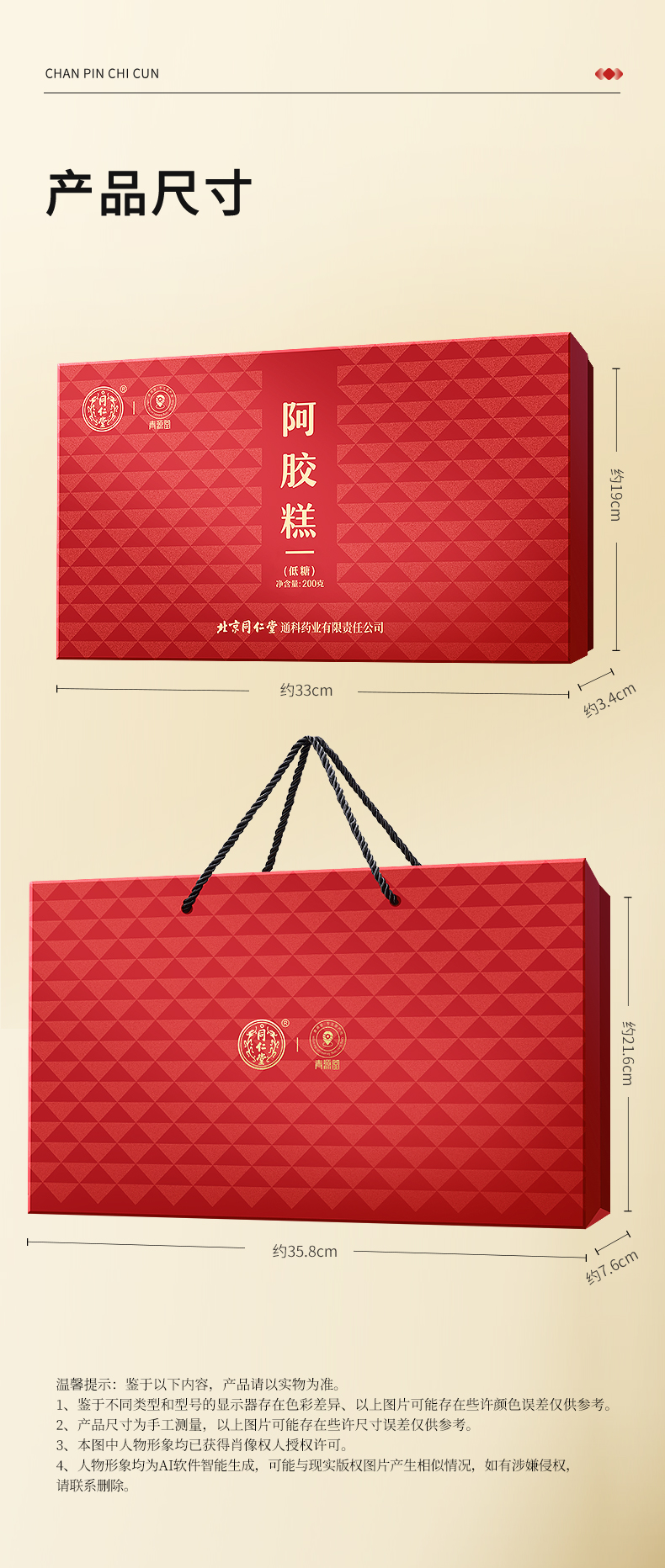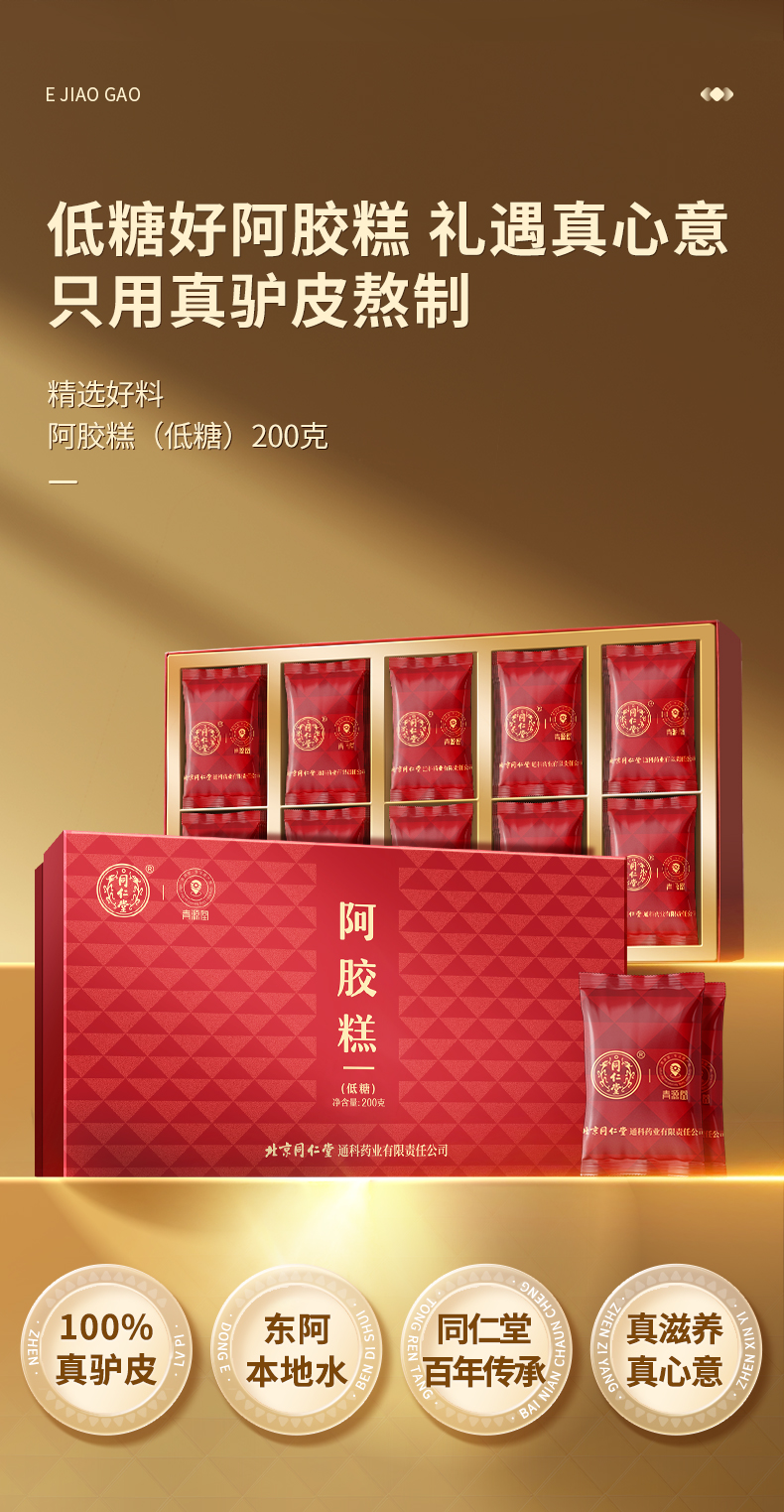 【正宗同仁堂品牌】北京同仁堂 青源堂 低糖阿胶糕200g 产地东阿县 胶质纯正 改良古法技艺SY