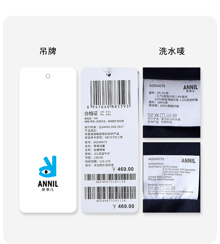 【实体店同款】女童全腰棉裤冬季新款安奈儿童装AG546073