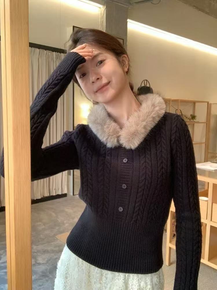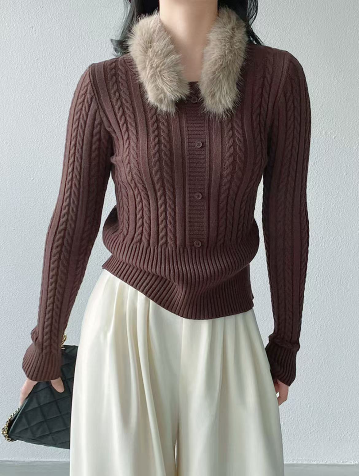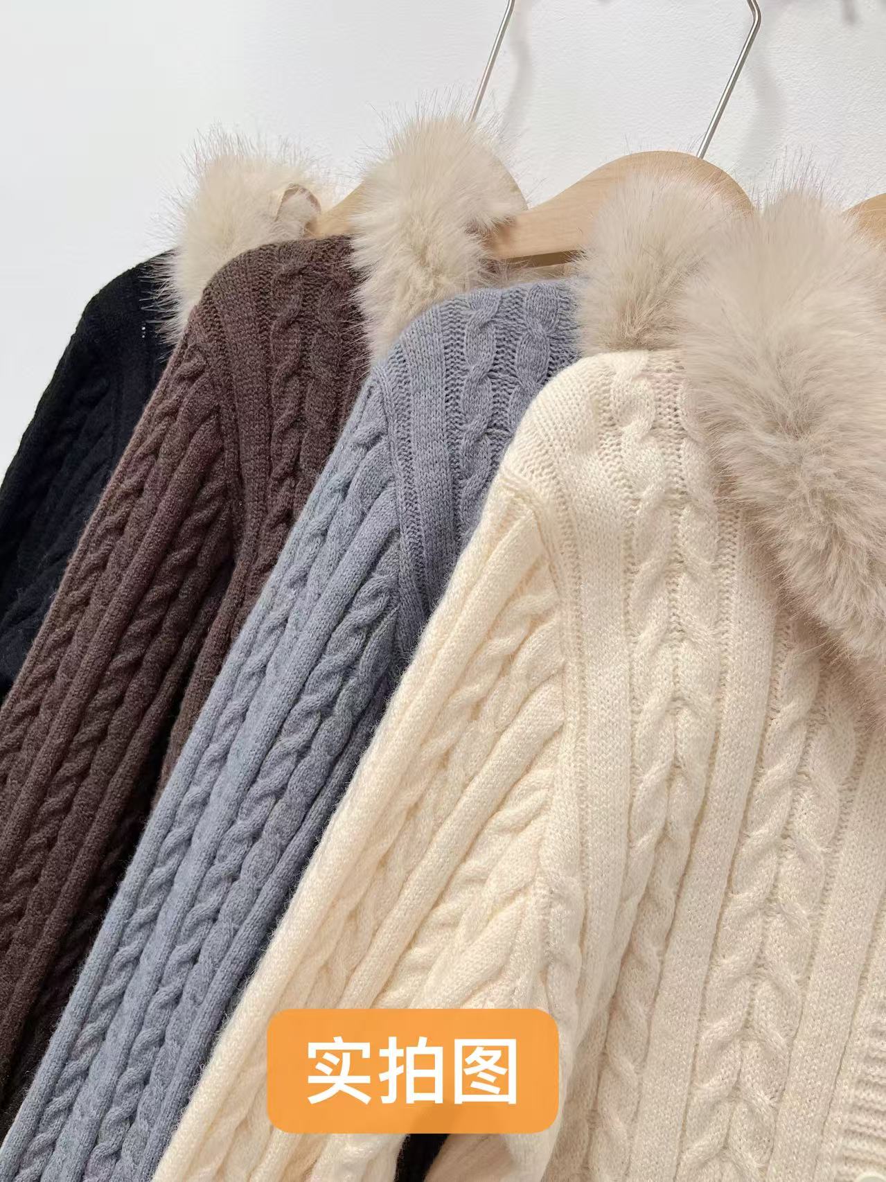 清了!清!不支持退货【自营】跨年福利-【超美毛衣】环保毛领可拆卸~Z098法式麻花修身小确幸气质毛衣-喜出