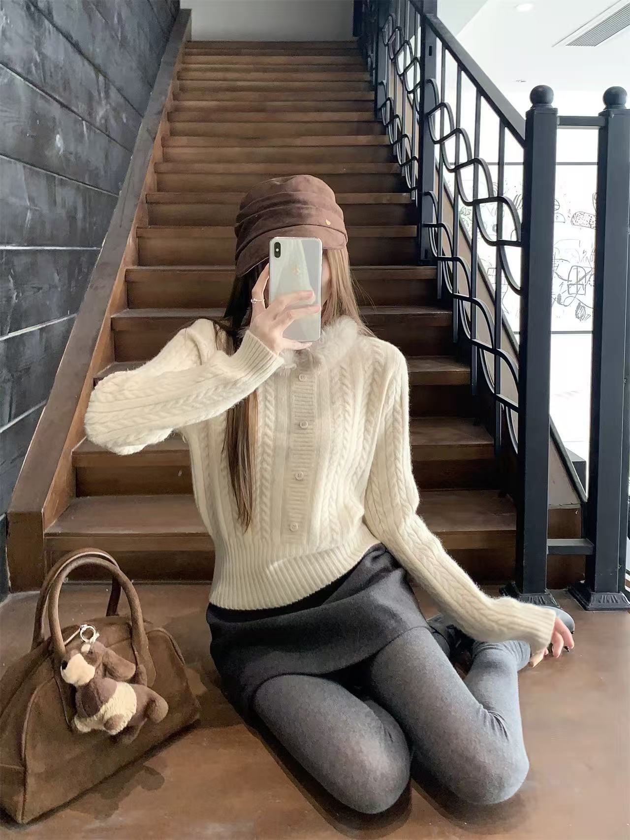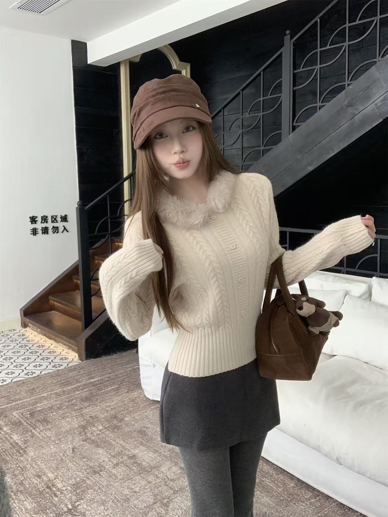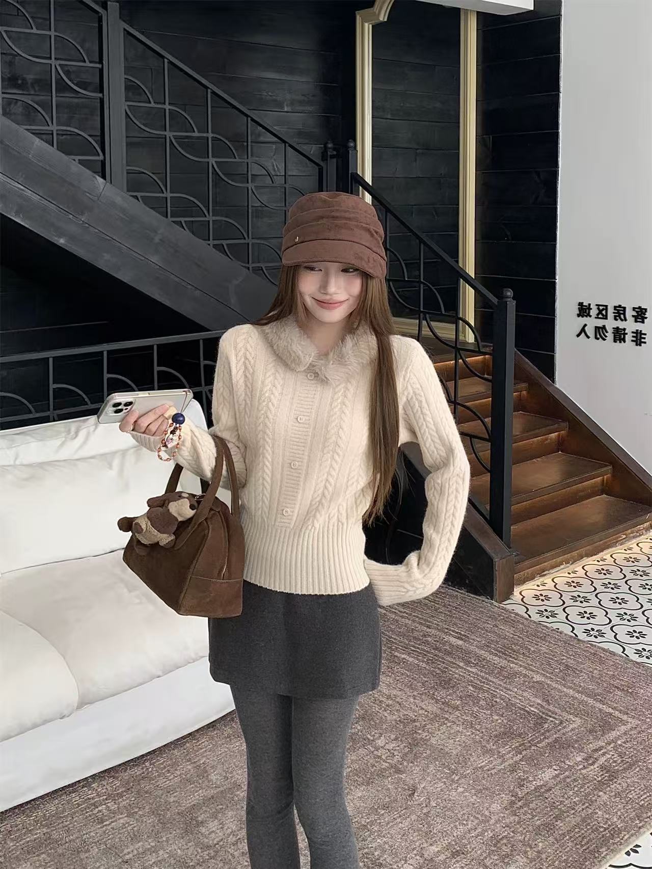 清了!清!不支持退货【自营】跨年福利-【超美毛衣】环保毛领可拆卸~Z098法式麻花修身小确幸气质毛衣-喜出