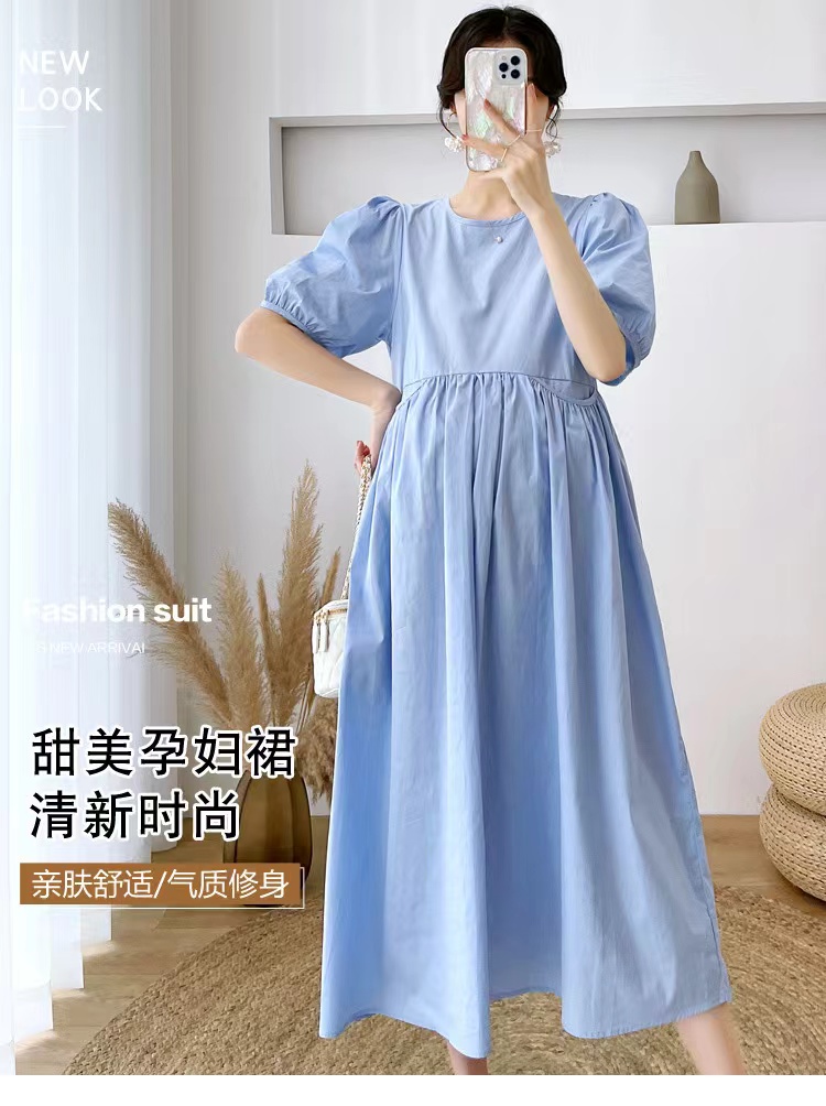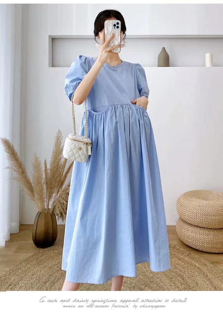 NO 退→样衣清仓(微瑕)!宽松圆领浅蓝清新连衣裙—喜出