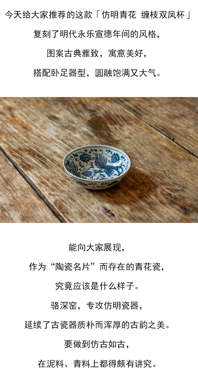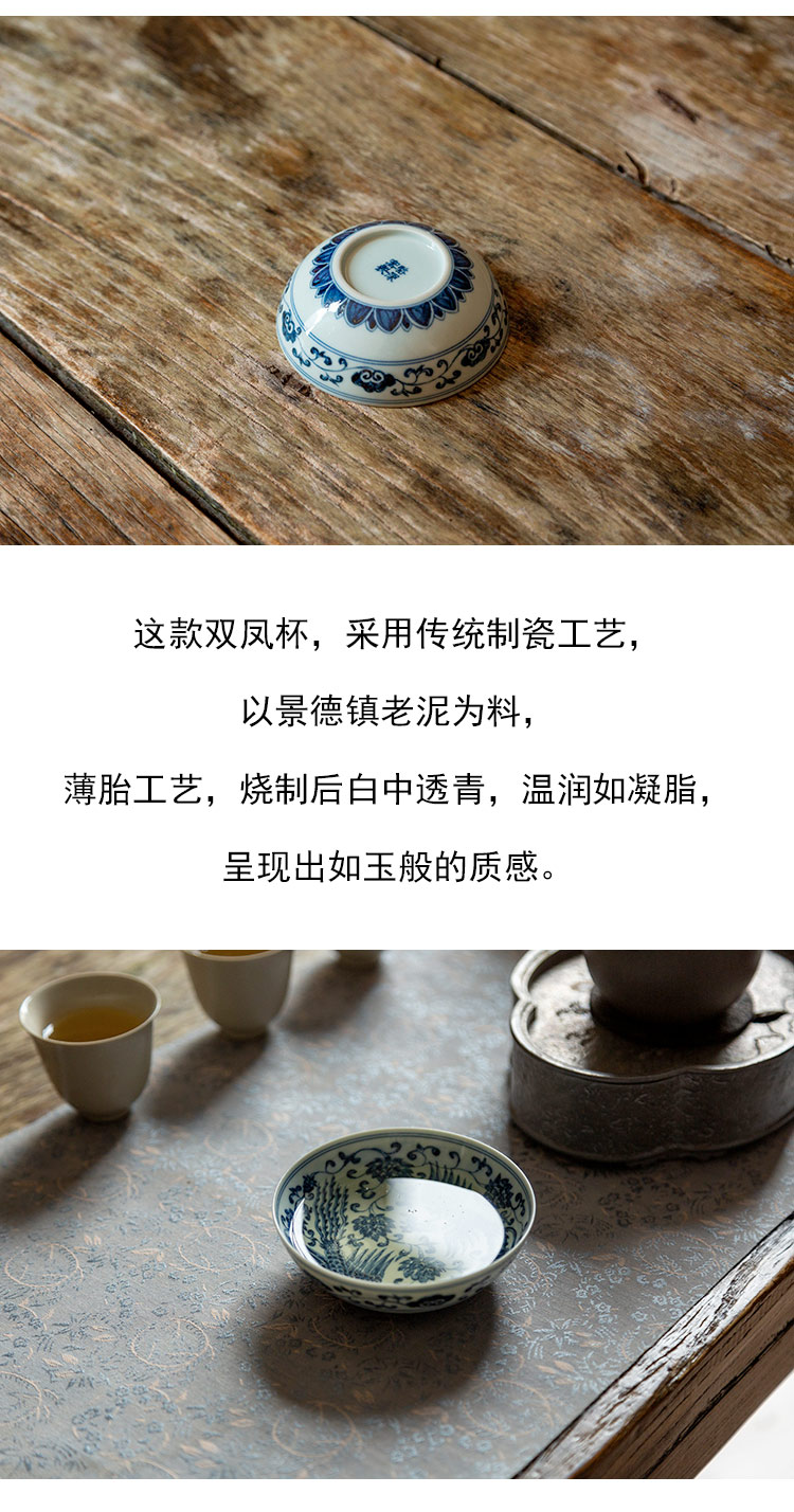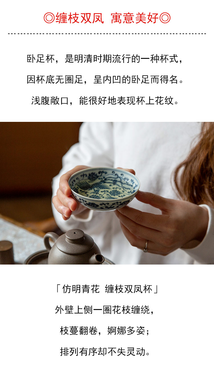 茶香记 骆深窑 仿明青花 缠枝双凤杯 经典器型 古典雅致 可玩可藏