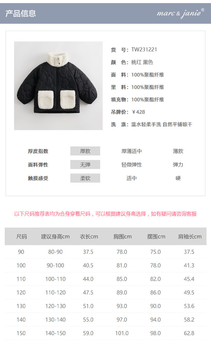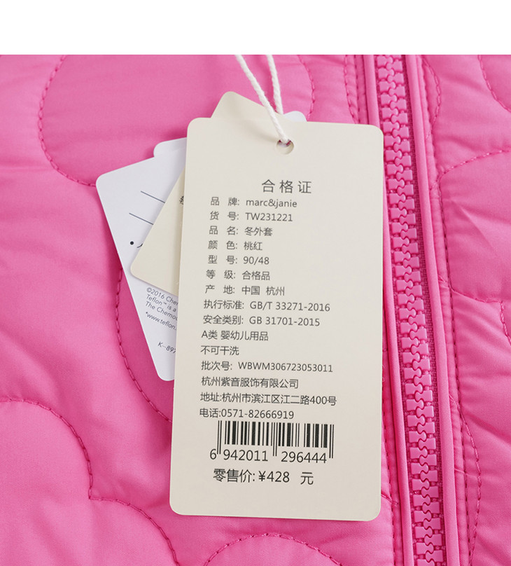 【三防】马克珍妮秋冬新款 女童宽松时尚绗棉外套 儿童棉服231221