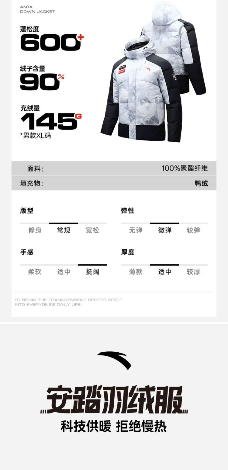 【L断码】安踏冰甲羽绒丨防泼水羽绒服男冬季防风保暖棉服外套152447926N
