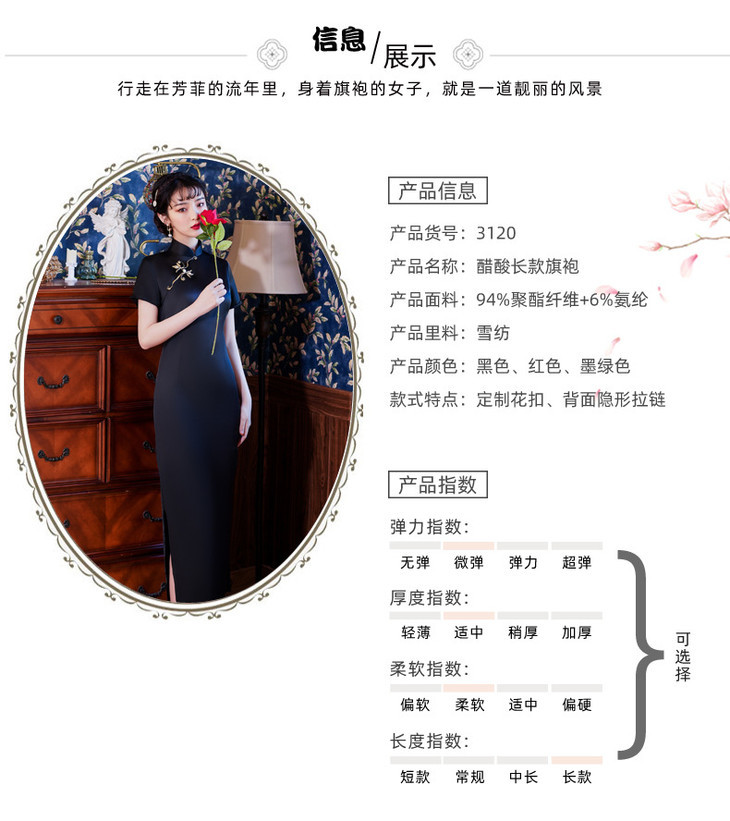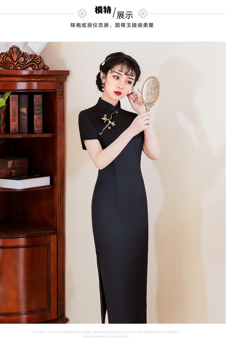 B-3120 中国风2021春季新款旗袍丝绸复古婚宴走秀长款醋酸旗袍连衣裙