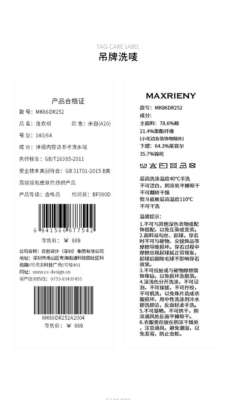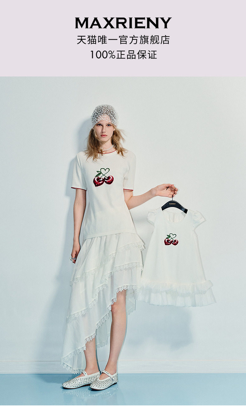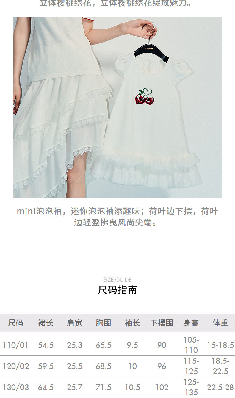 【商场同款】MAXRIENY甜美风mini泡泡袖立体绣花A字女童连衣裙(货号:MK86DR252)