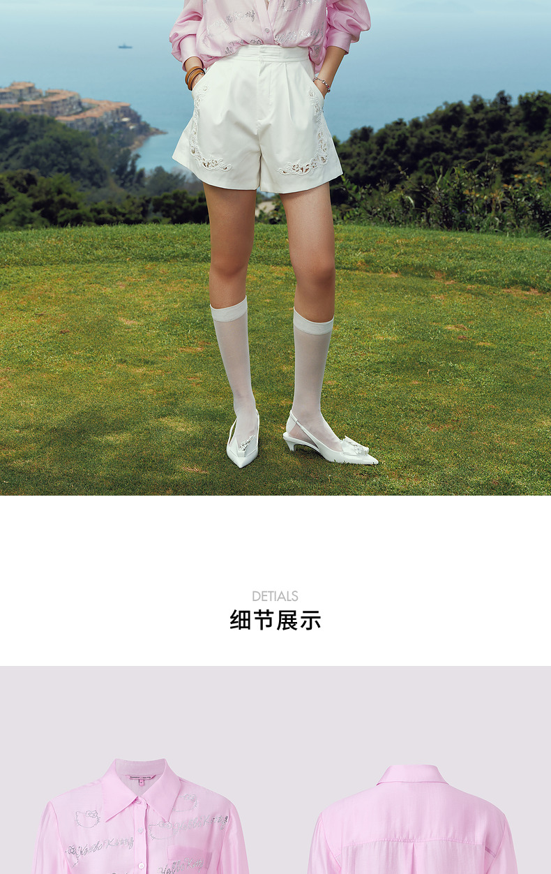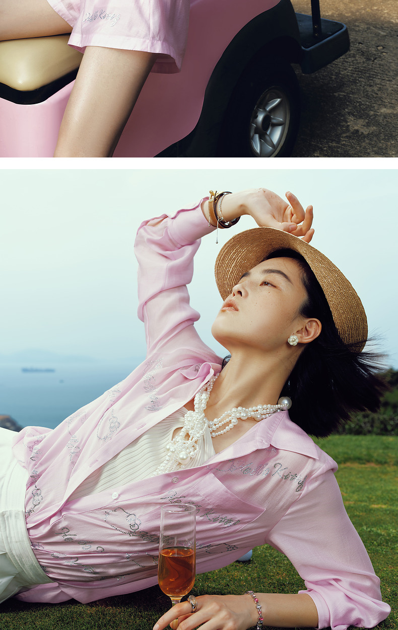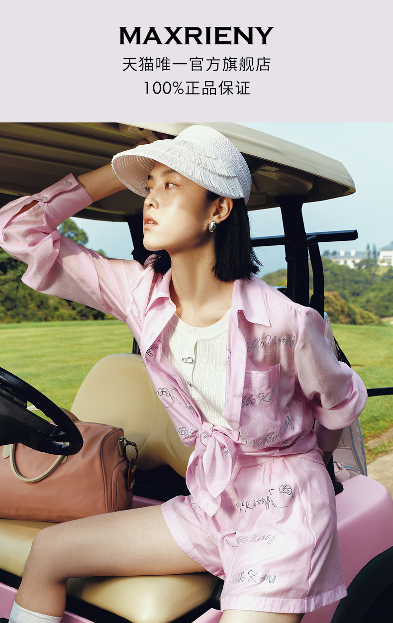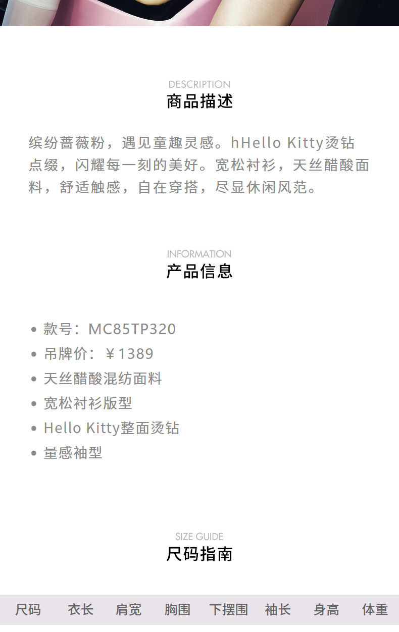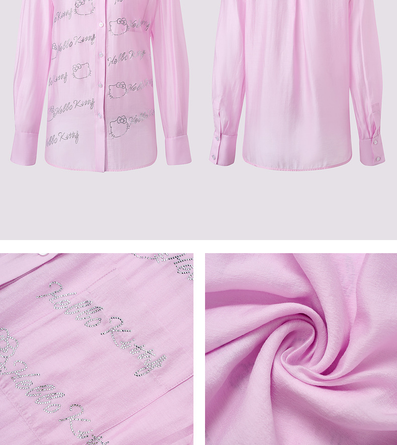 【Hello Kitty时尚系列】MAXRIENYKitty粉天丝烫钻宽松衬衫女(货号:MC85TP320)