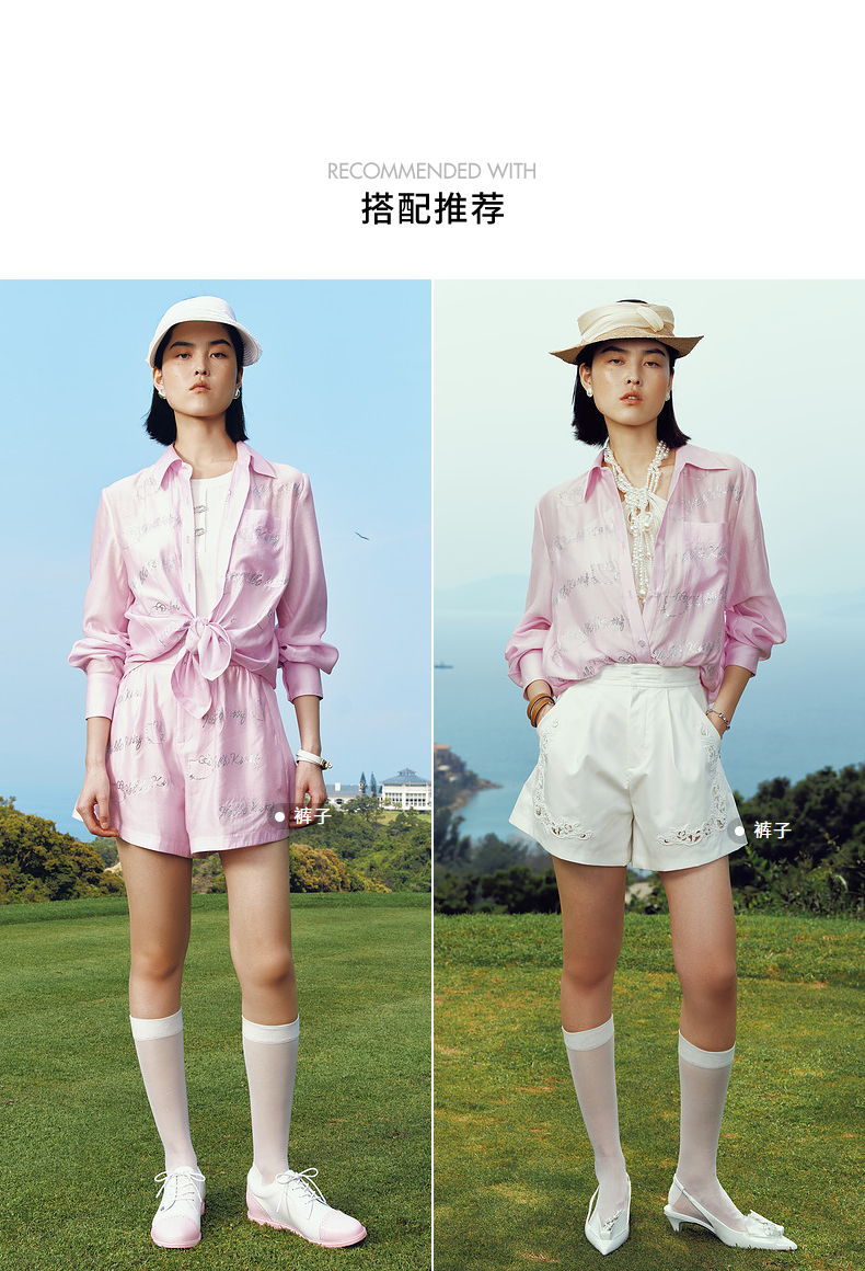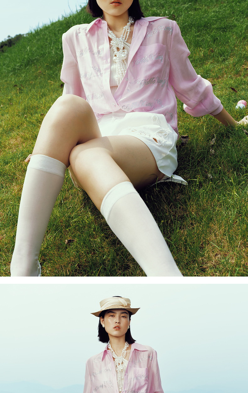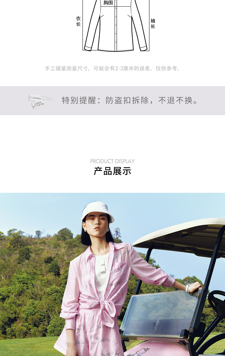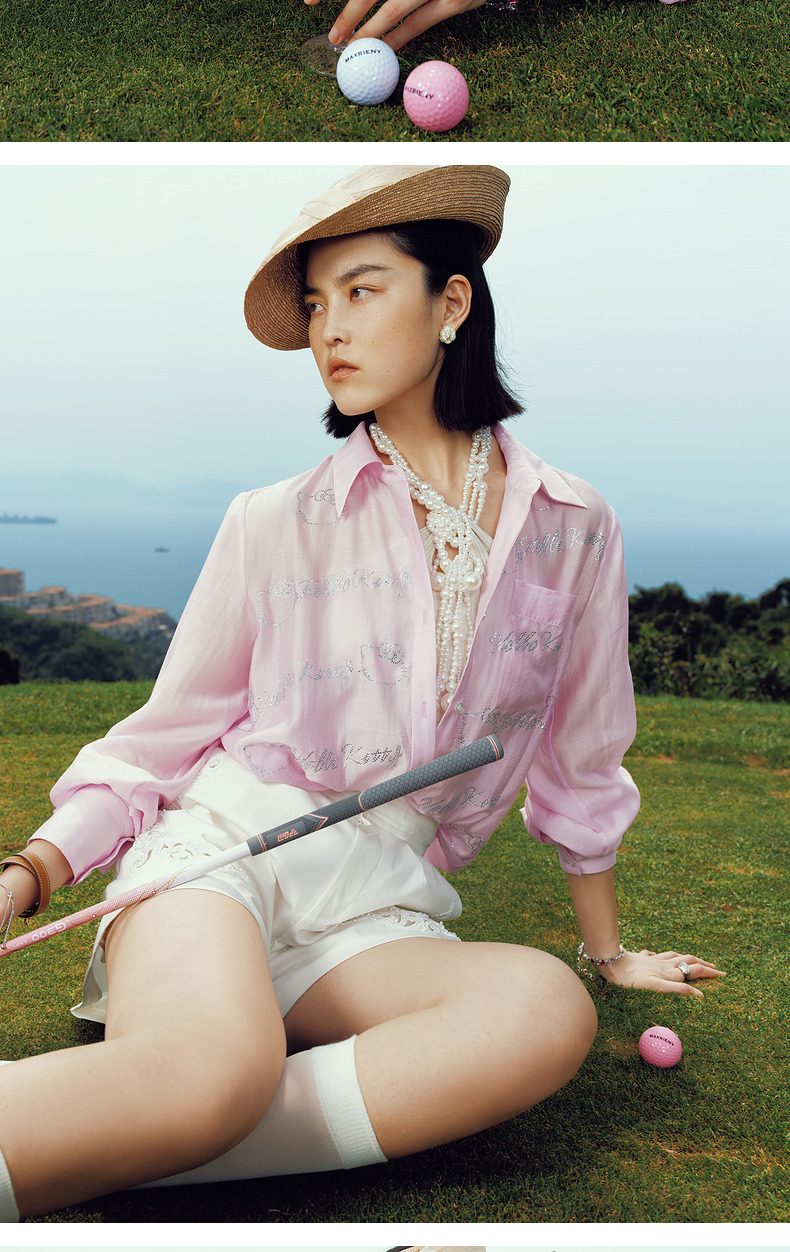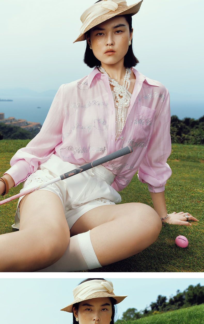 【Hello Kitty时尚系列】MAXRIENYKitty粉天丝烫钻宽松衬衫女(货号:MC85TP320)