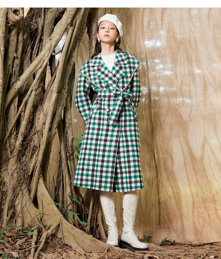 MAXRIENY格纹直身型大衣冬季复古学院风外套氛围感外衣女MS87CT755Z50