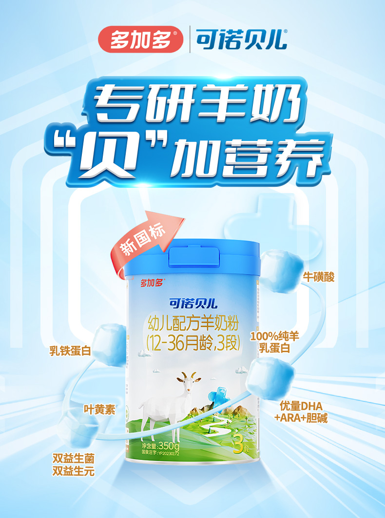 多加多可诺贝儿3段350g试用装小分子幼儿羊奶粉1-3岁