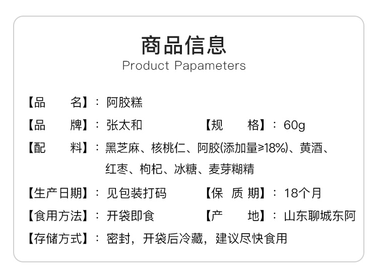 张太和阿胶糕 60g 添加≥18%阿胶 黑芝麻核桃阿胶糕 即食阿胶糕 精选礼品 年货礼盒 赠精美礼品袋 送礼优选 礼盒