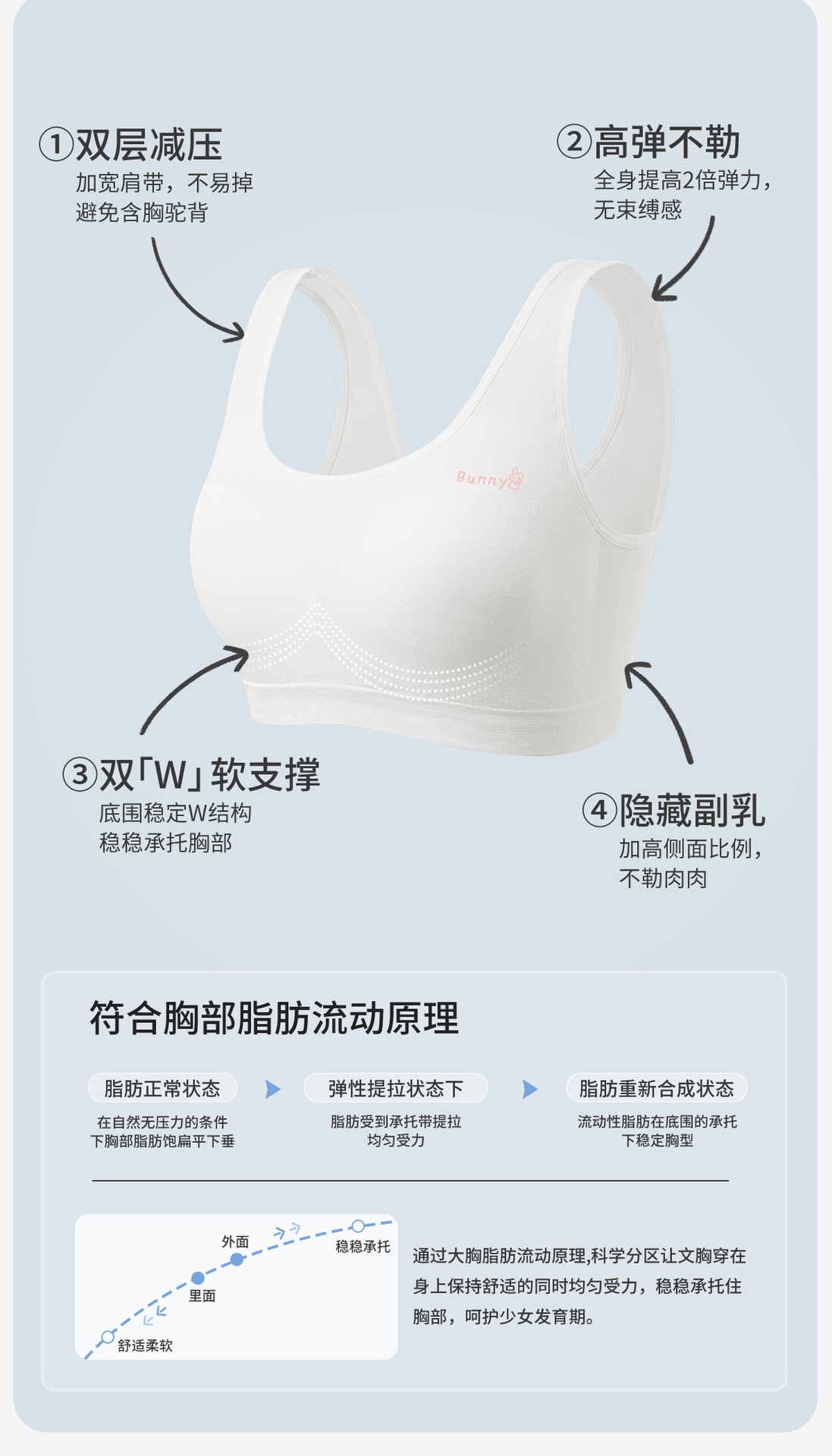 春节不打烊【大码系列❗️加大弹力】少女内衣加大码发育期肉肉女孩15岁初中高中文胸学生运动防震背心。jc