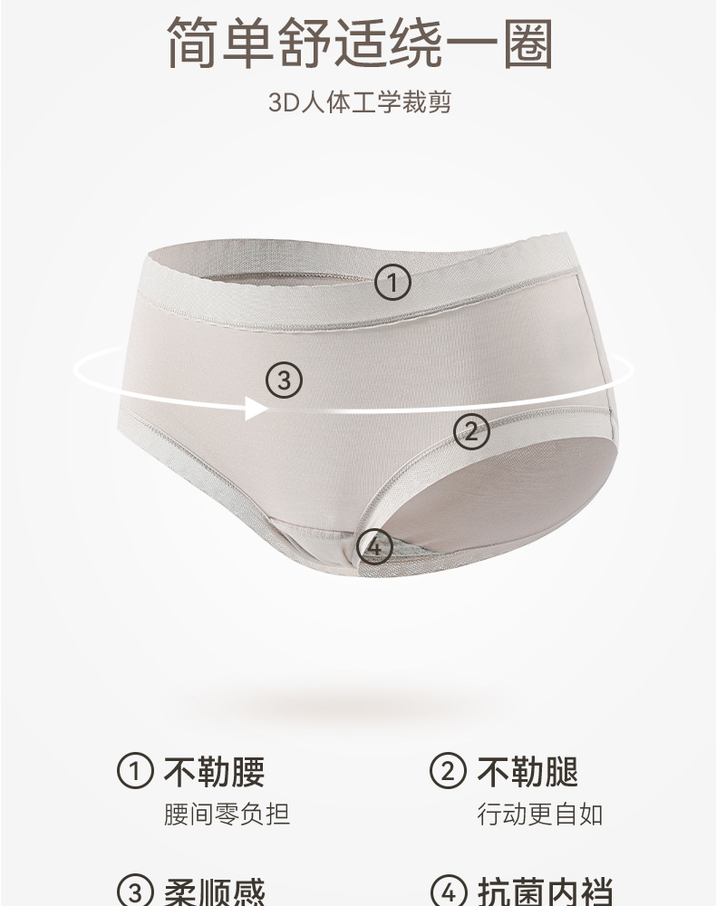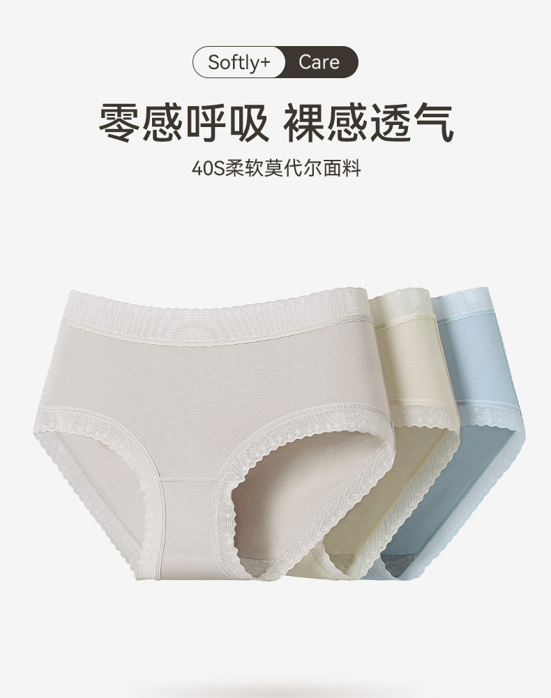 芬腾舒适夏季少女内裤女士莫代尔中腰薄款女透气无痕三角裤短裤头