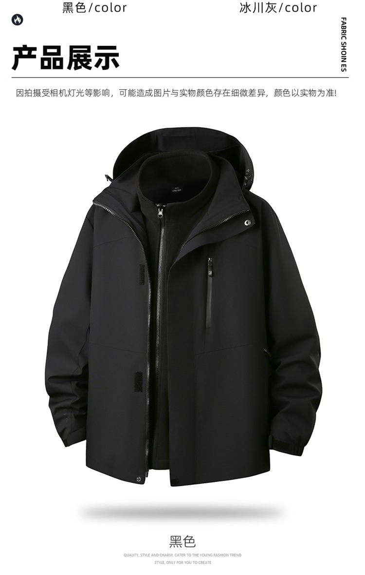 【三合一】【DK】大依优型大码男装可脱卸摇粒绒风衣两件套保暖衣商务外套加肥加大