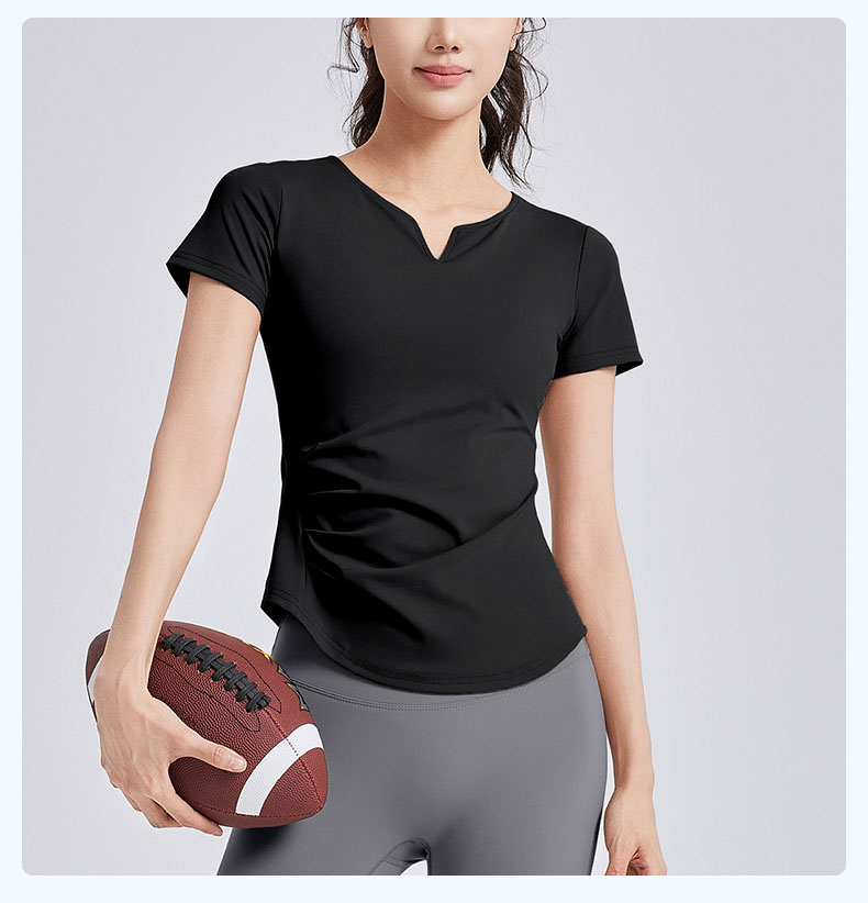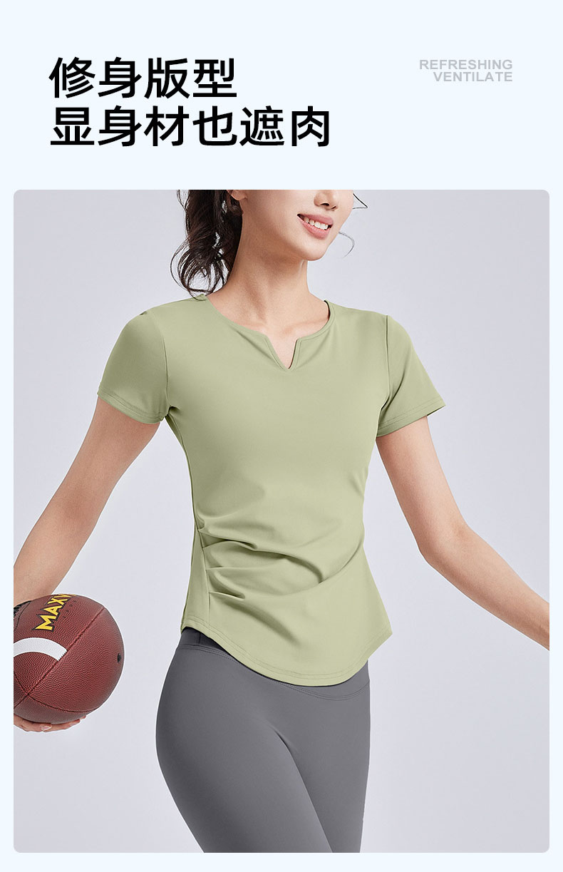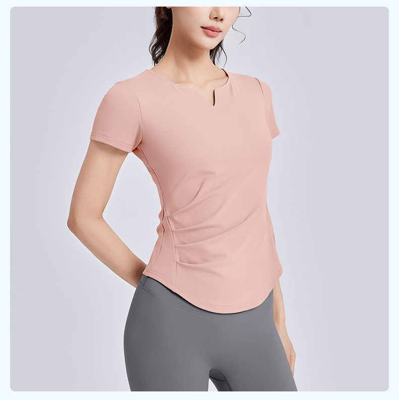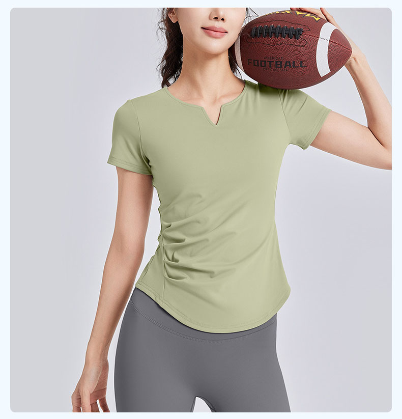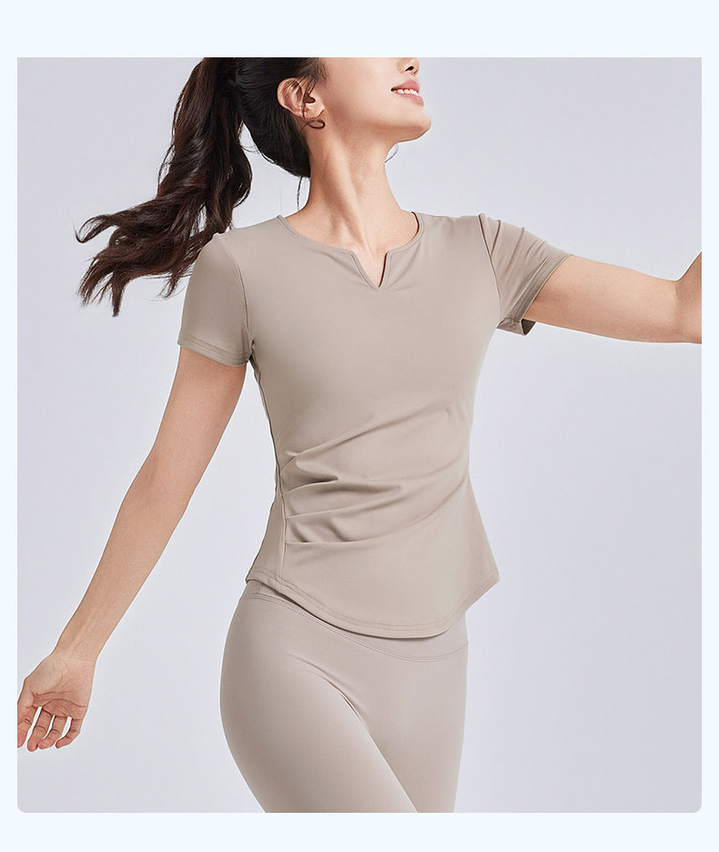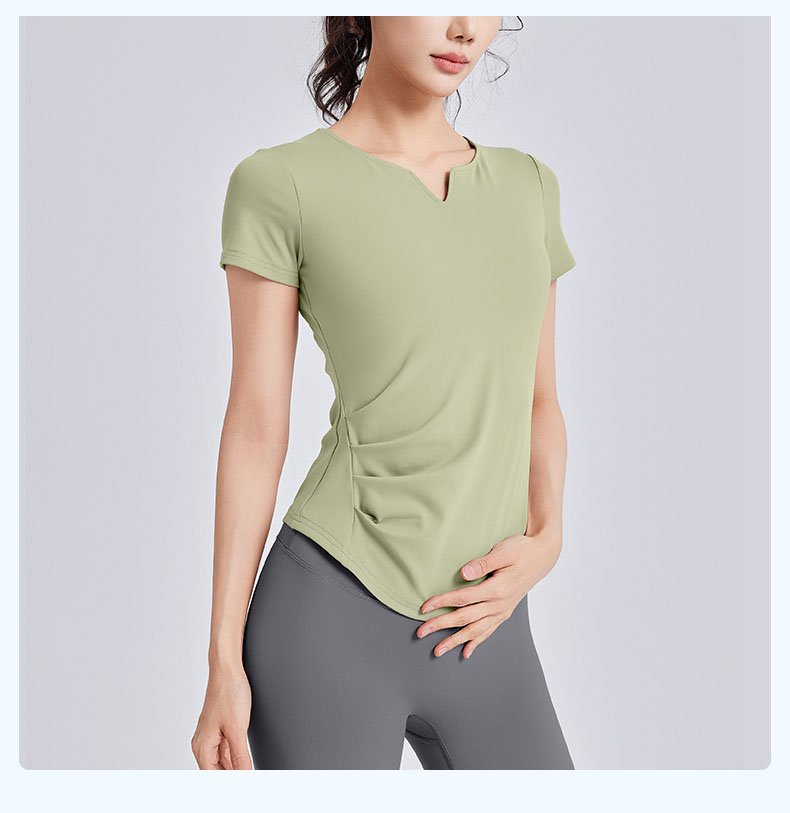 跃牌【瑜堂系列】新款v领褶皱瑜伽服短袖防震固定杯显瘦健身上衣t恤JYMD107