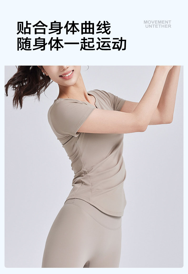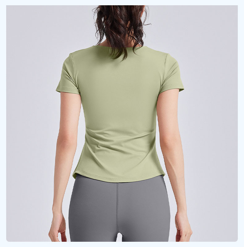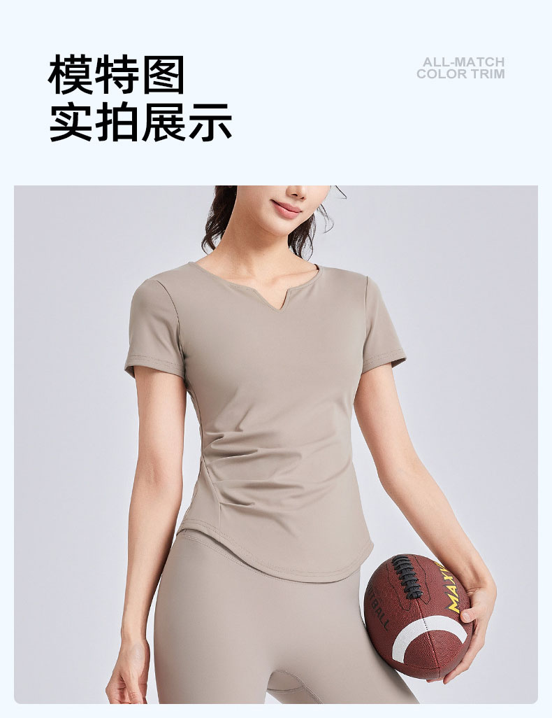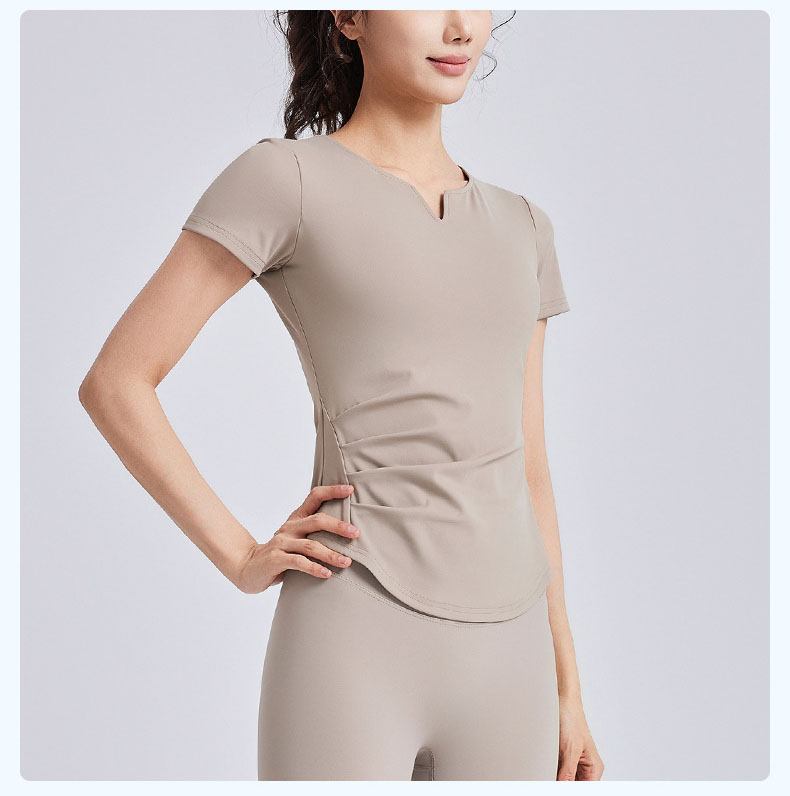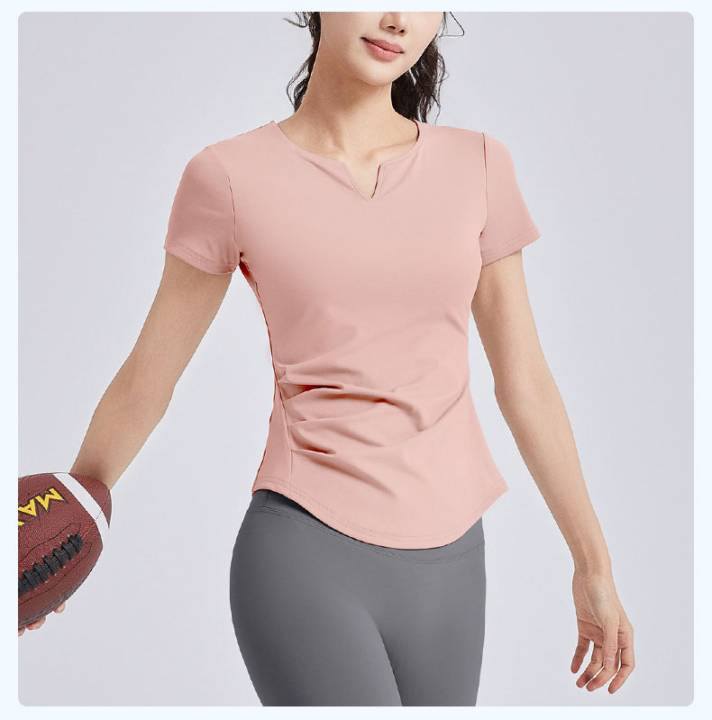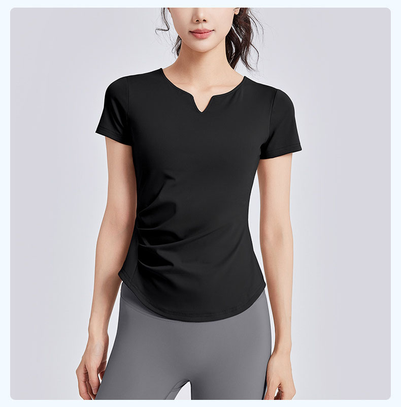 跃牌【瑜堂系列】新款v领褶皱瑜伽服短袖防震固定杯显瘦健身上衣t恤JYMD107
