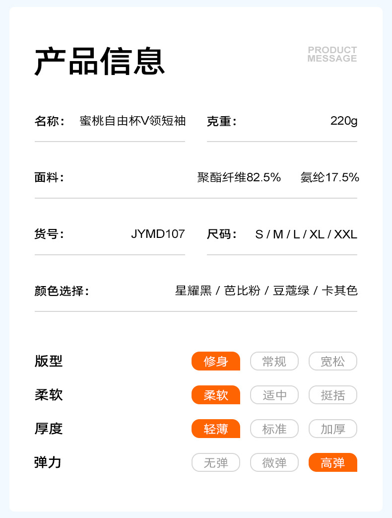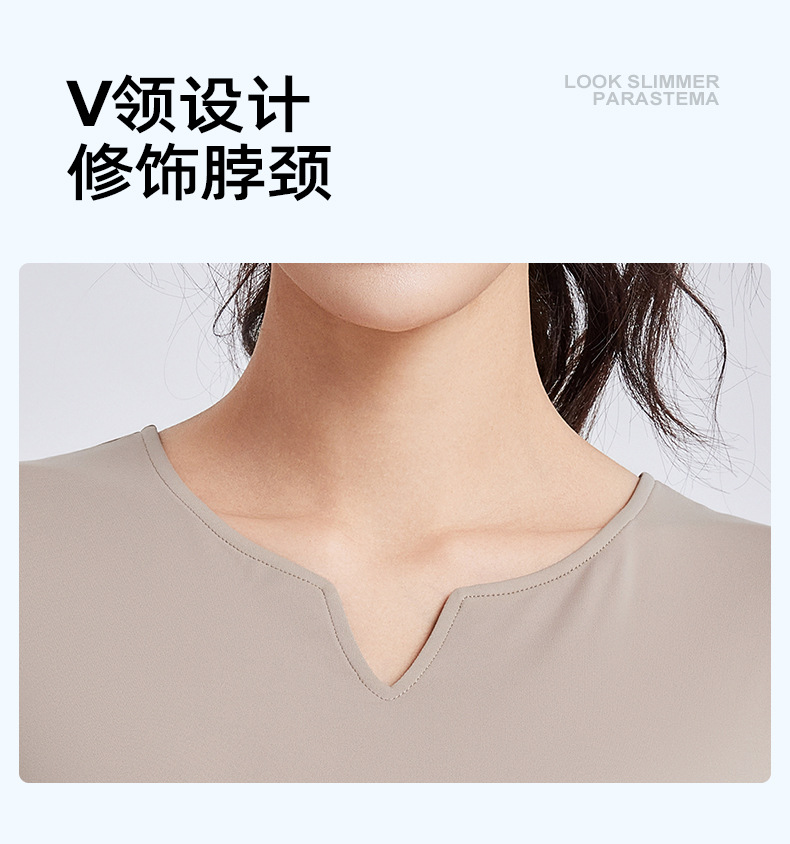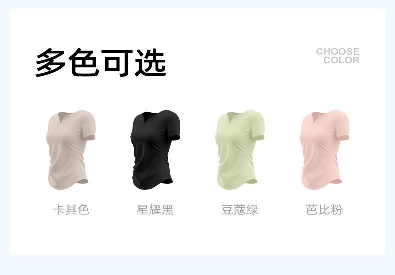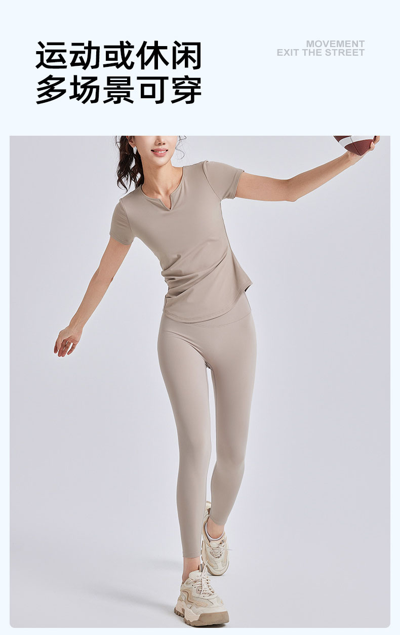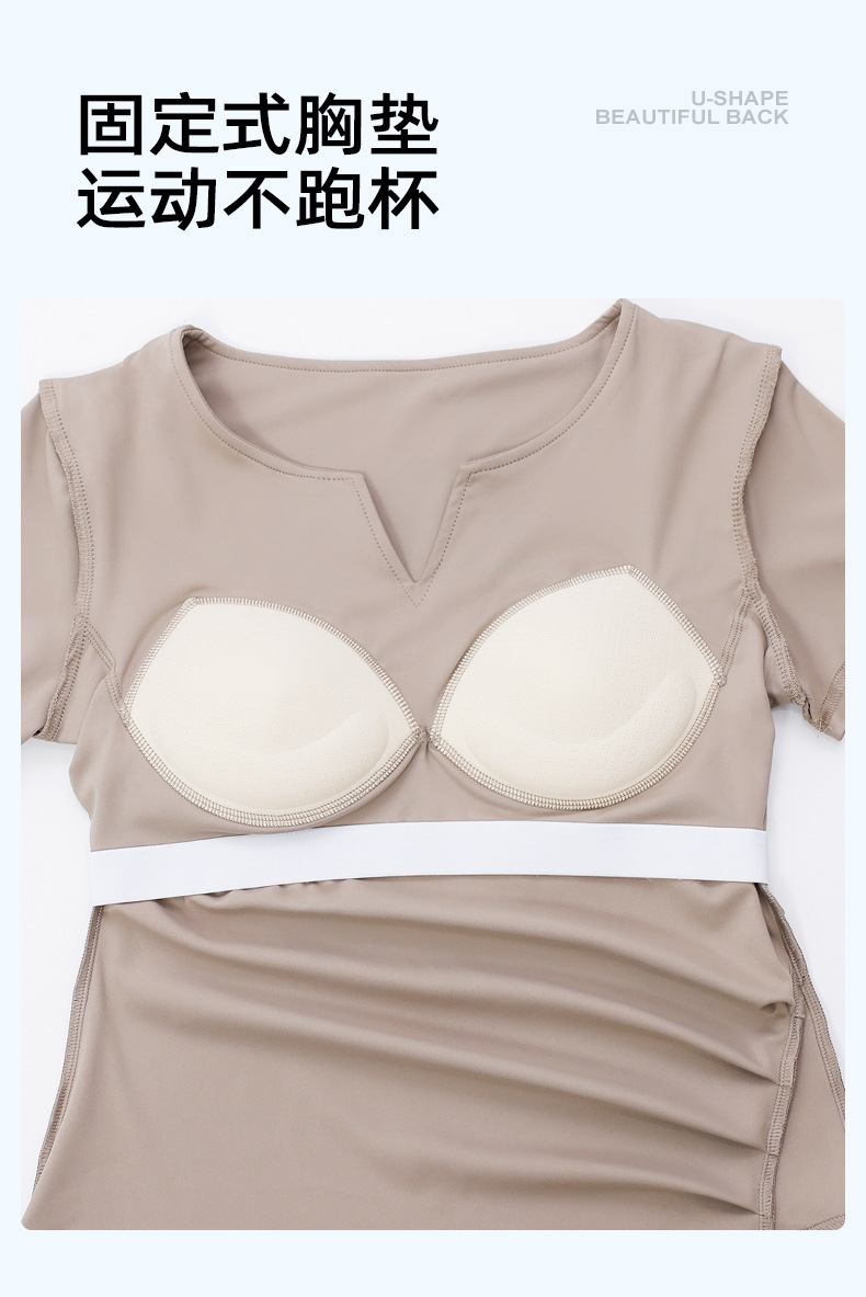 跃牌【瑜堂系列】新款v领褶皱瑜伽服短袖防震固定杯显瘦健身上衣t恤JYMD107