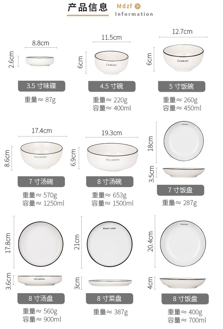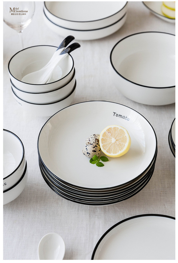 摩登主妇 欧式创意字母陶瓷餐具家用餐盘套装菜盘汤盘米饭碗组合
