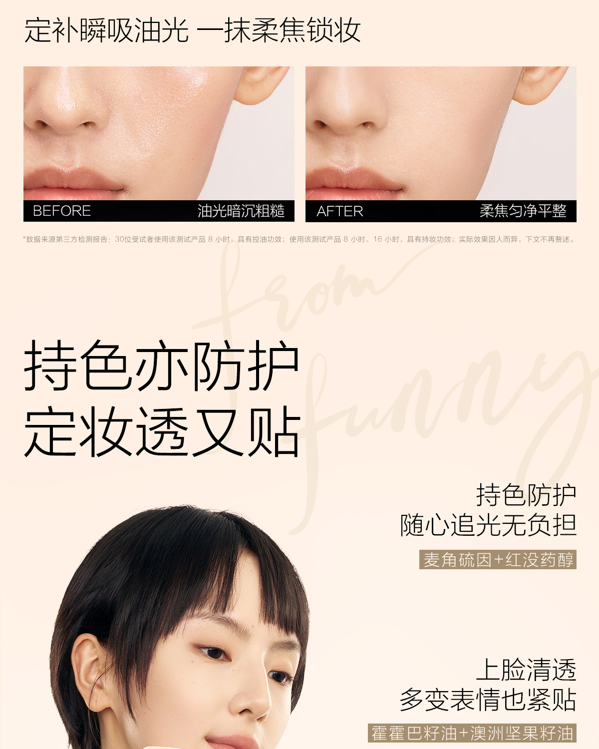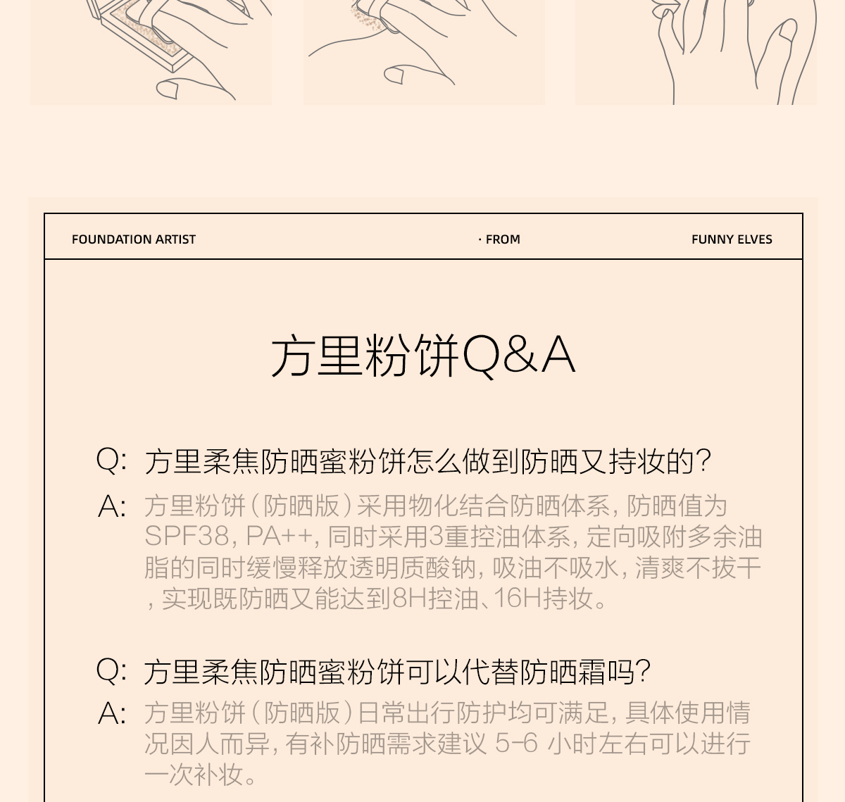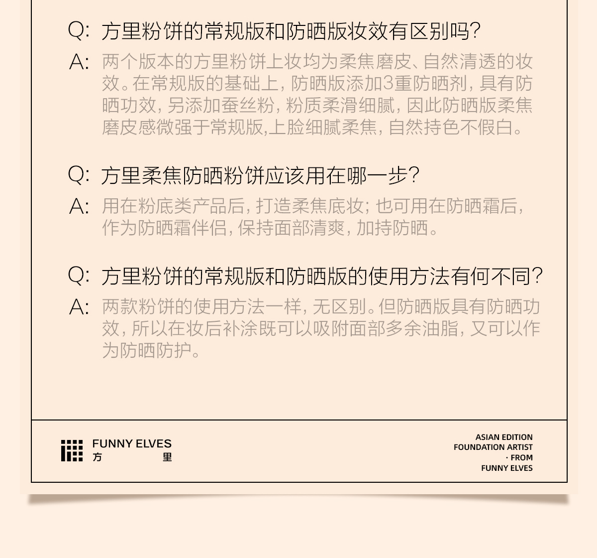 【新品】FunnyElves方里柔焦防晒蜜粉饼8g控油持久锁妆磨皮定补妆防晒SPF38 PA++