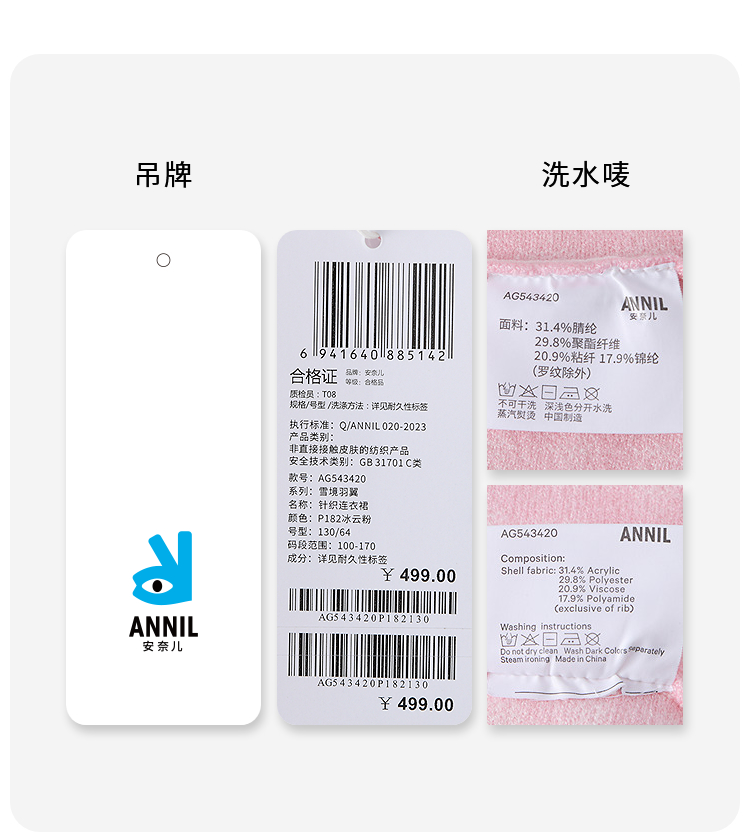 【实体店同款】女童针织连衣裙冬季新款安奈儿童装AG543420