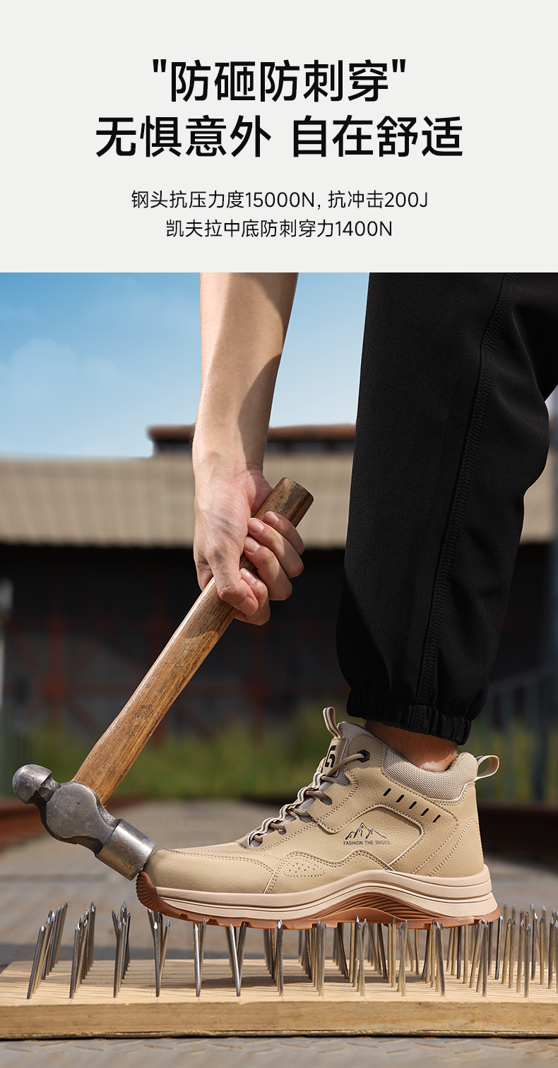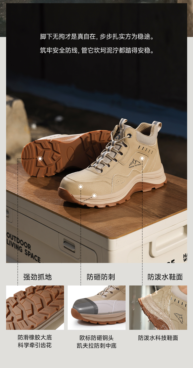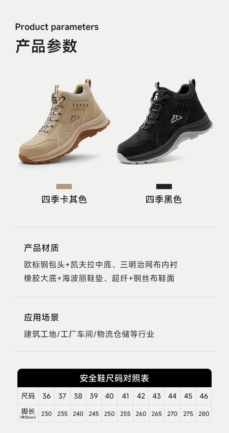 新款劳保鞋防砸防刺穿钢包头橡胶底四季款高帮