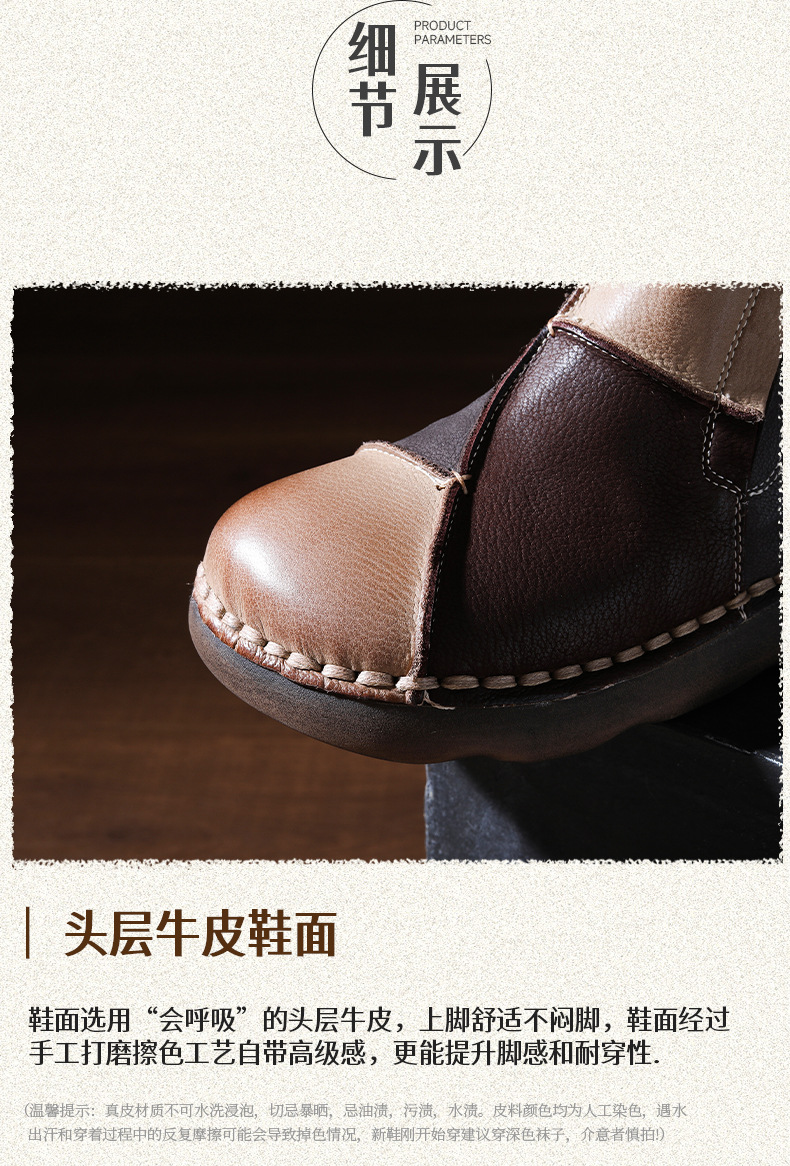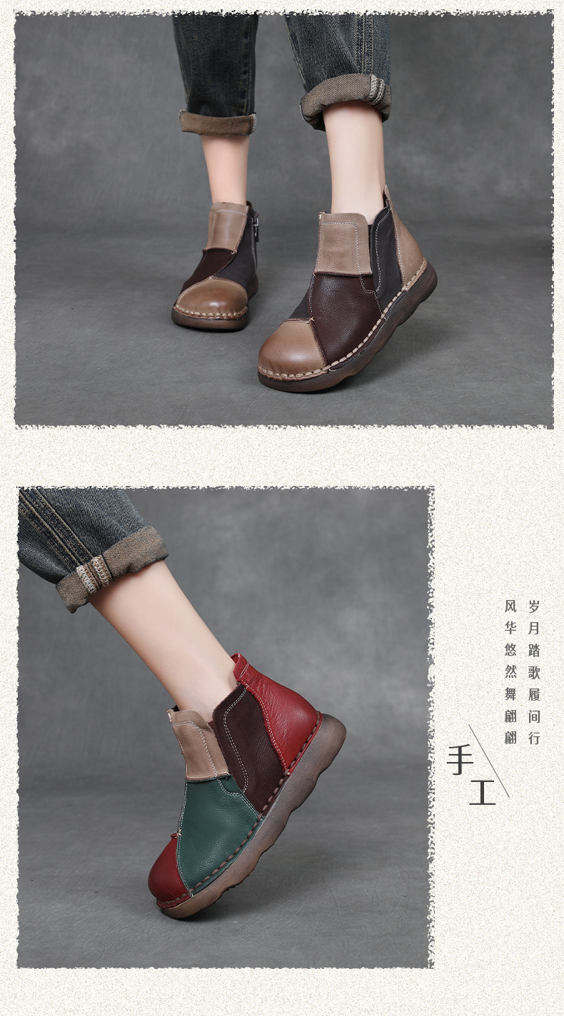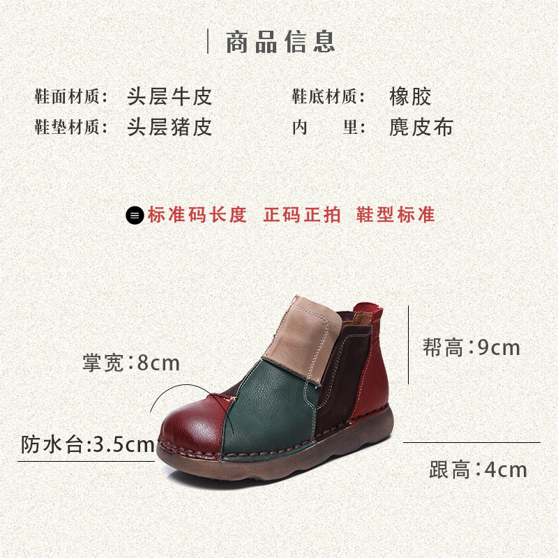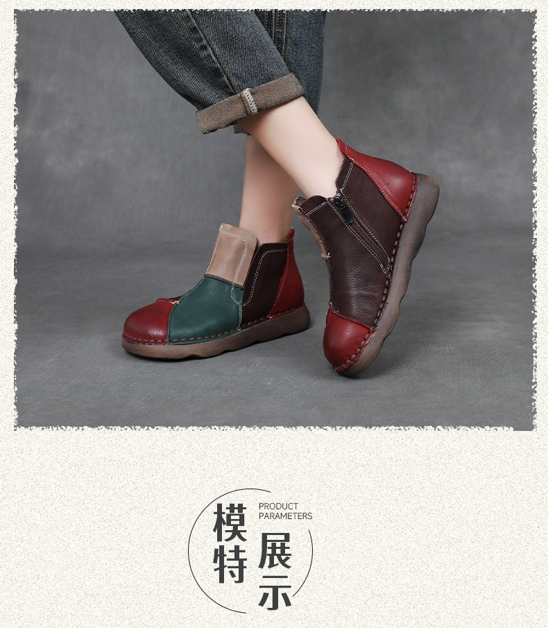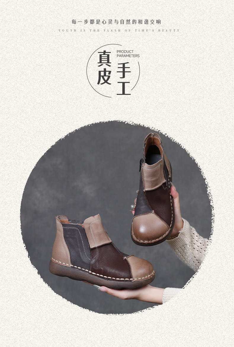 FR 85668短靴复古圆头平底拼色休闲单鞋 商品图3