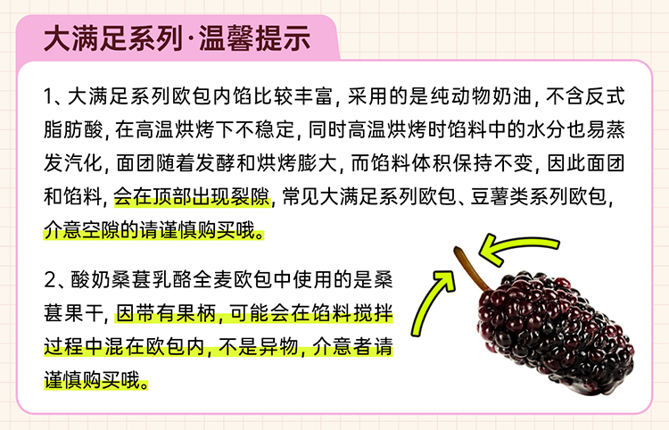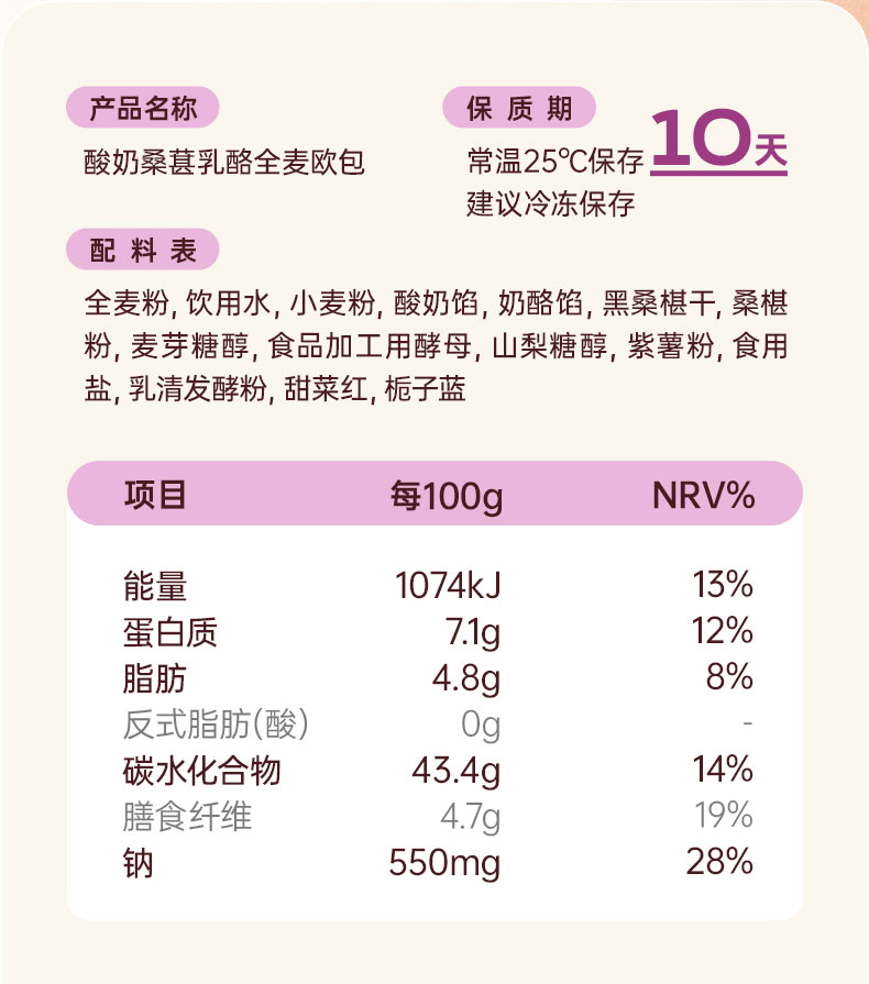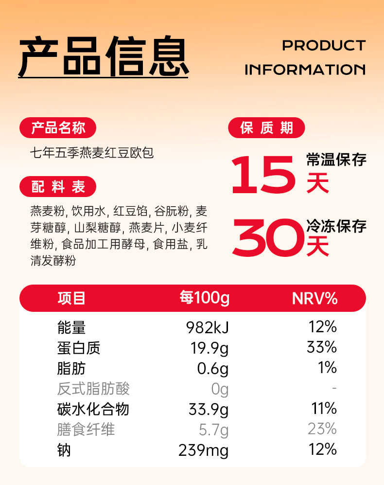 | 【品名】七年五季可可奶酪雷神欧包/燕麦红豆欧包 【规格】 雷神欧包130g*4只装(10天常温保存) 粒粒红豆欧包69g*12只(15天常温保存) 酸奶桑葚乳酪全麦欧包130g*4只装(10天常温保存) 【生产日期】现做现发 【储存方式】常温25℃保存,建议冷藏 【产地】武汉 【发货地】武汉 【发货快递】顺丰 【不发货区域】新疆、西藏、内蒙古、宁夏、甘肃、青海、港澳台地区不发货 【发货时效】48-72小时,节假日顺延 【售后标准】短保现做产品不退换。 【温馨提示】图片本身是有广告效应的,仅供参考,其次欧包的内陷都是机器注芯,不能保证百分百0误差 ,介意的小伙伴勿拍哦! 如遇到漏气胀包的情况请务必不要食用产品,请及时提供销毁照片给客服为您处理售后。 |