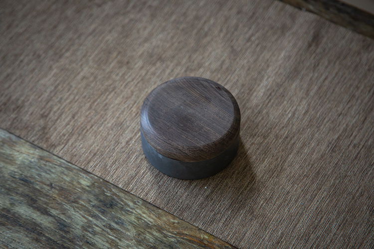 「实木盖罗纹小圆砚」整器厚实,不易移动,