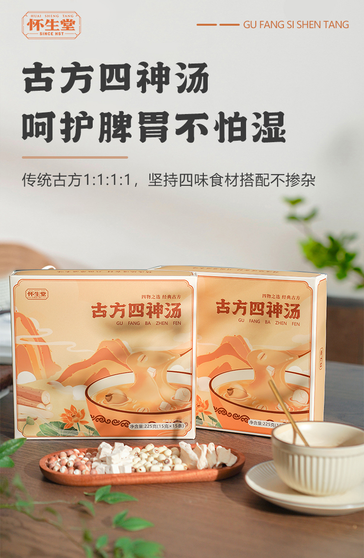 怀生堂 新一代古方四神汤粉莲子芡实茯苓铁棍山药片养脾胃,225g/盒