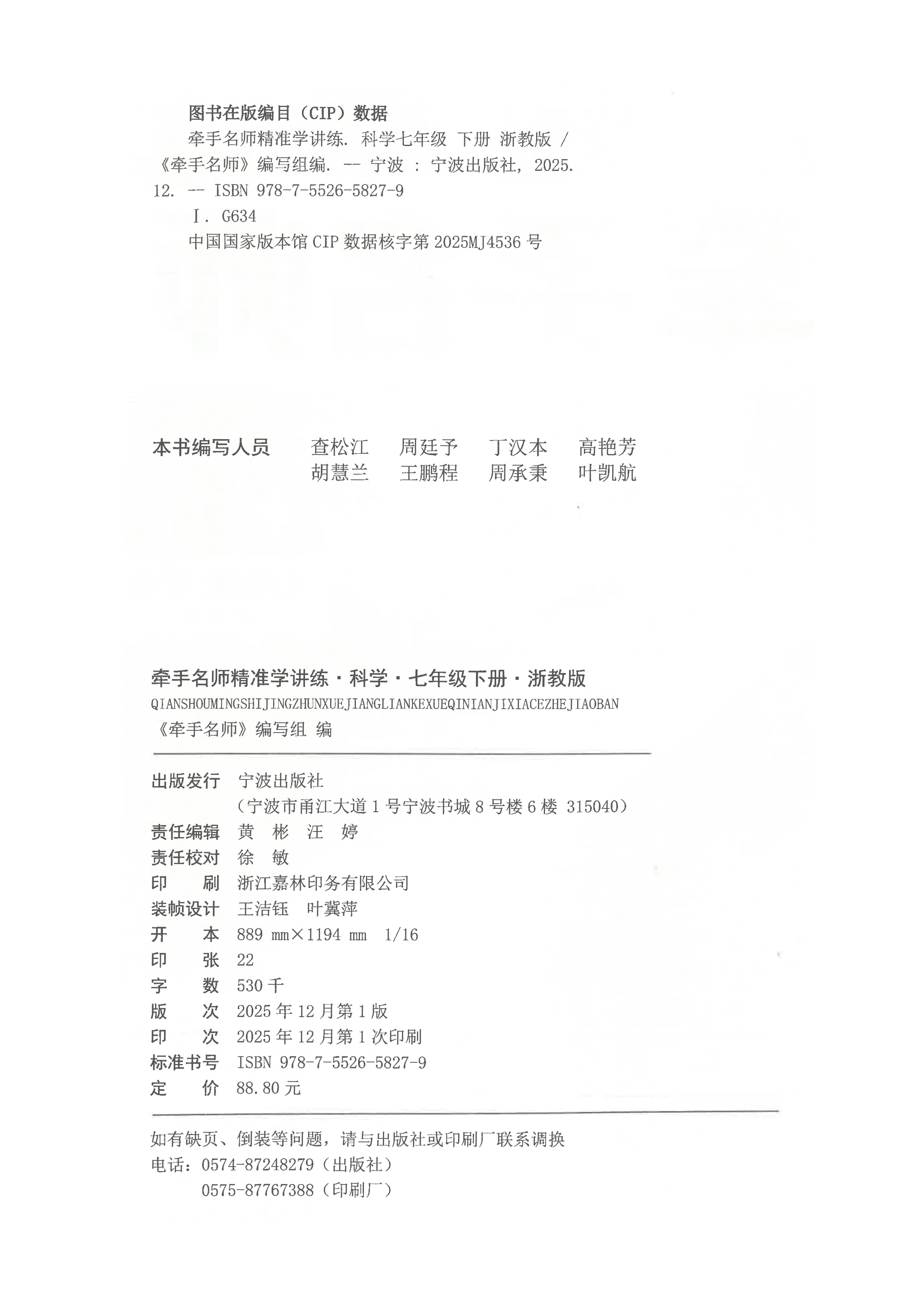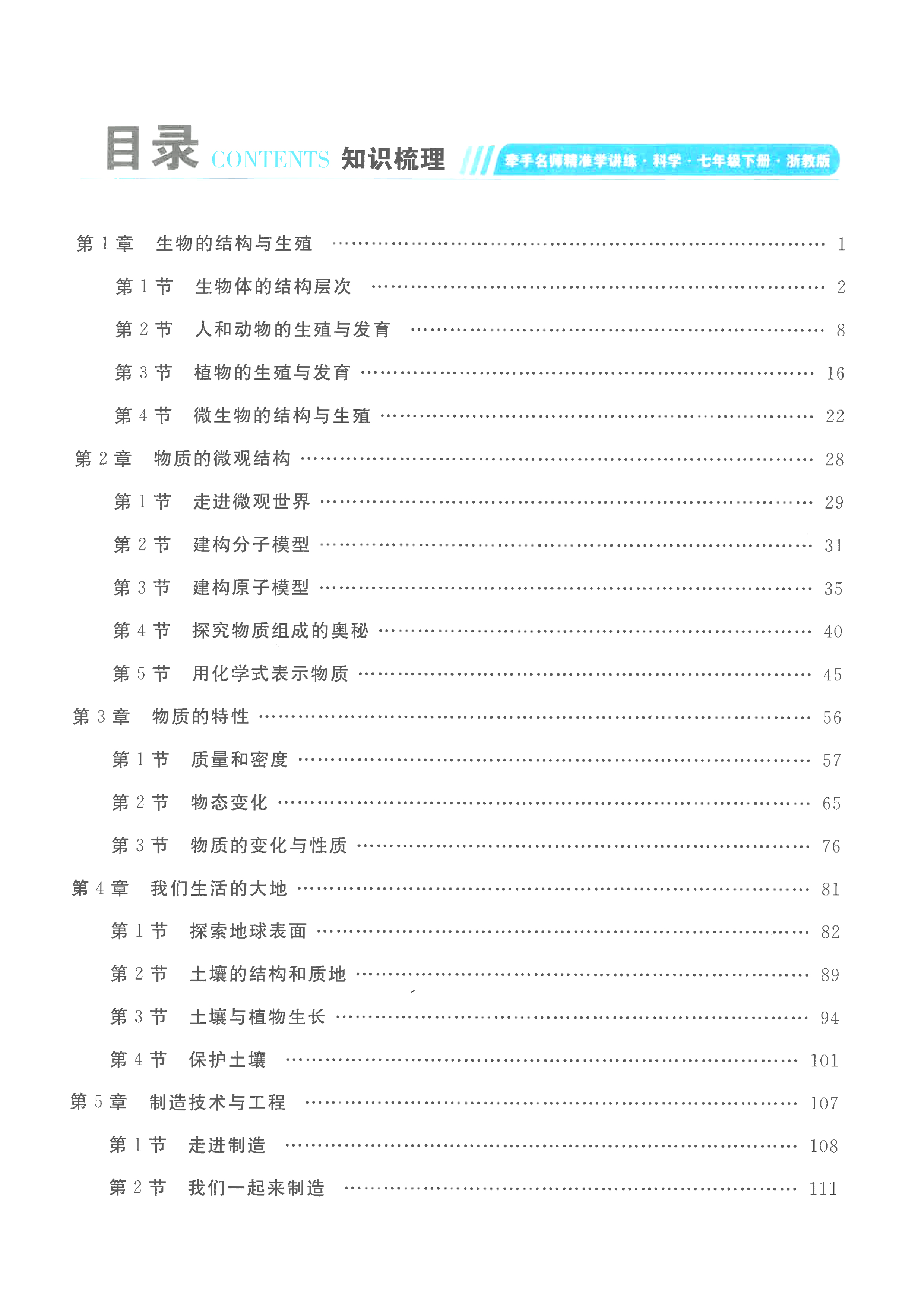 牵手名师 精准学讲练 科学 七年级下册 浙教版
