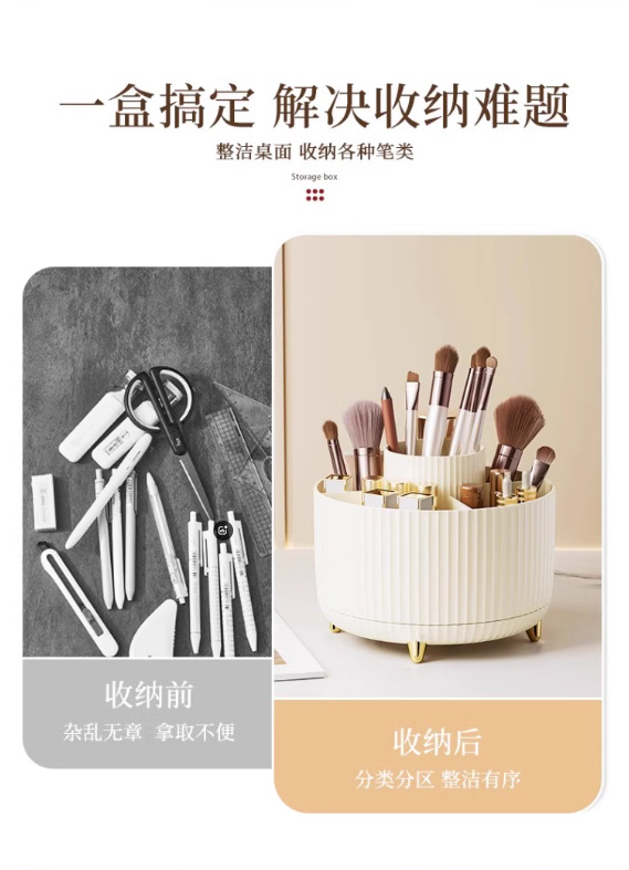 【分格收纳❗️优选材质】桌面旋转收纳盒家用整理盒旋转护肤品梳妆台化妆品收纳盒笔筒收纳。ya