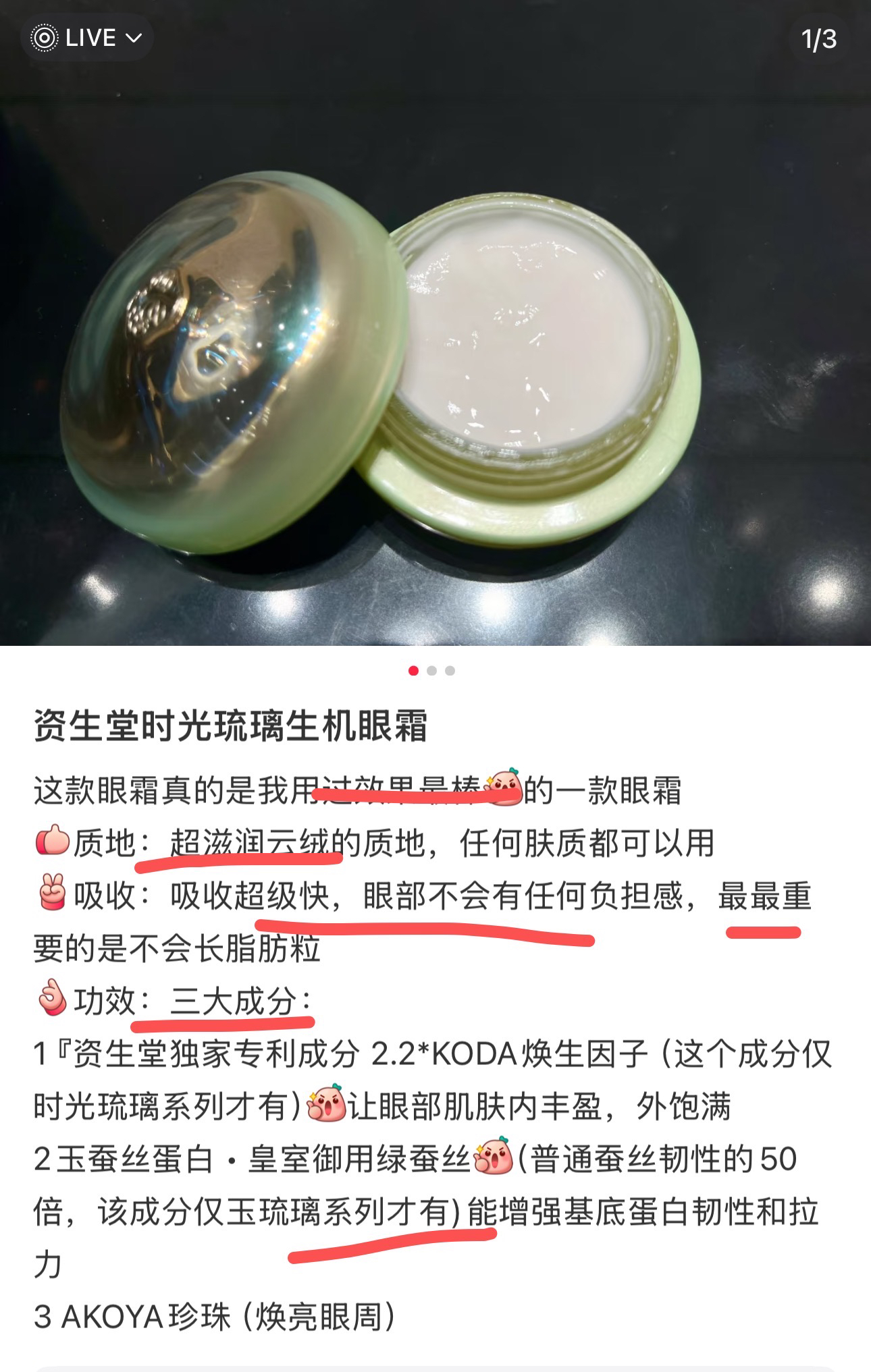 原价2580 资生堂时光琉璃生机系列 玉琉璃眼霜正装15ml 国内专柜