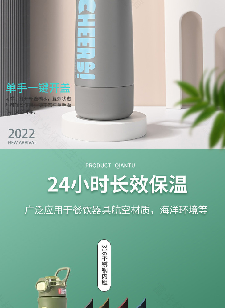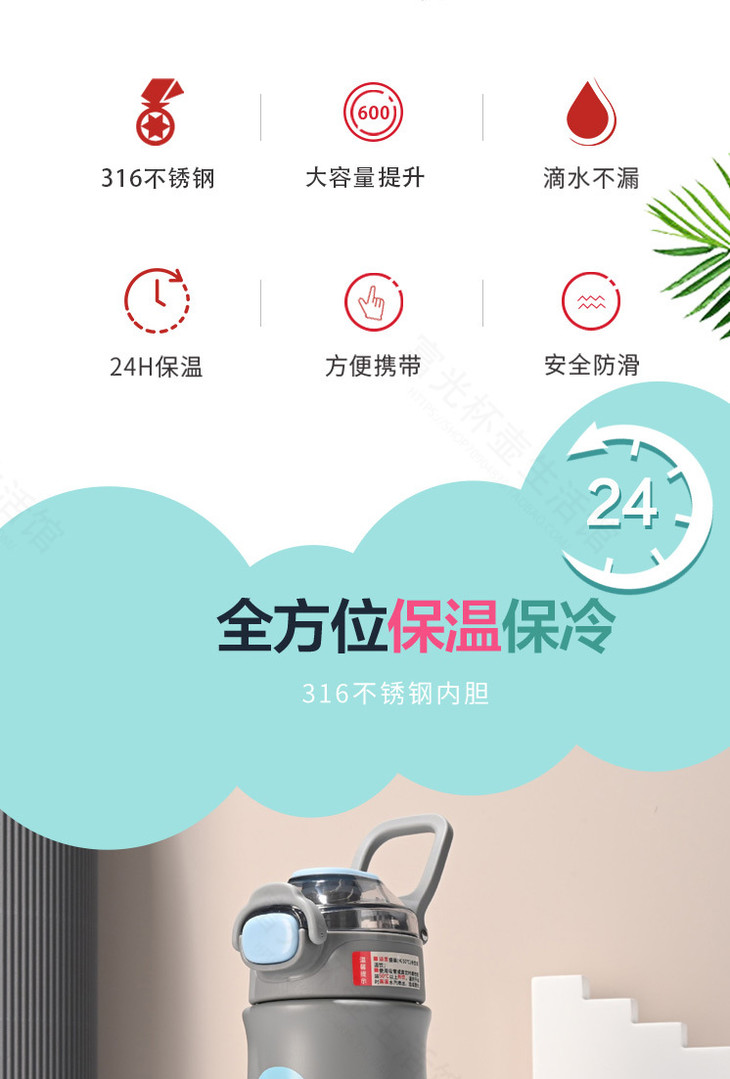 【富光】富光保温杯316不锈钢便携时尚吸管杯子运动600ml大容量车载水杯