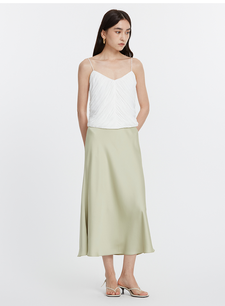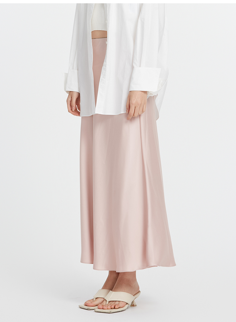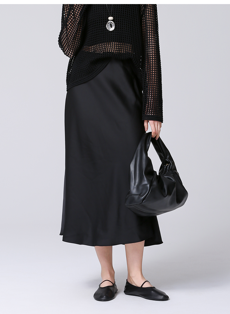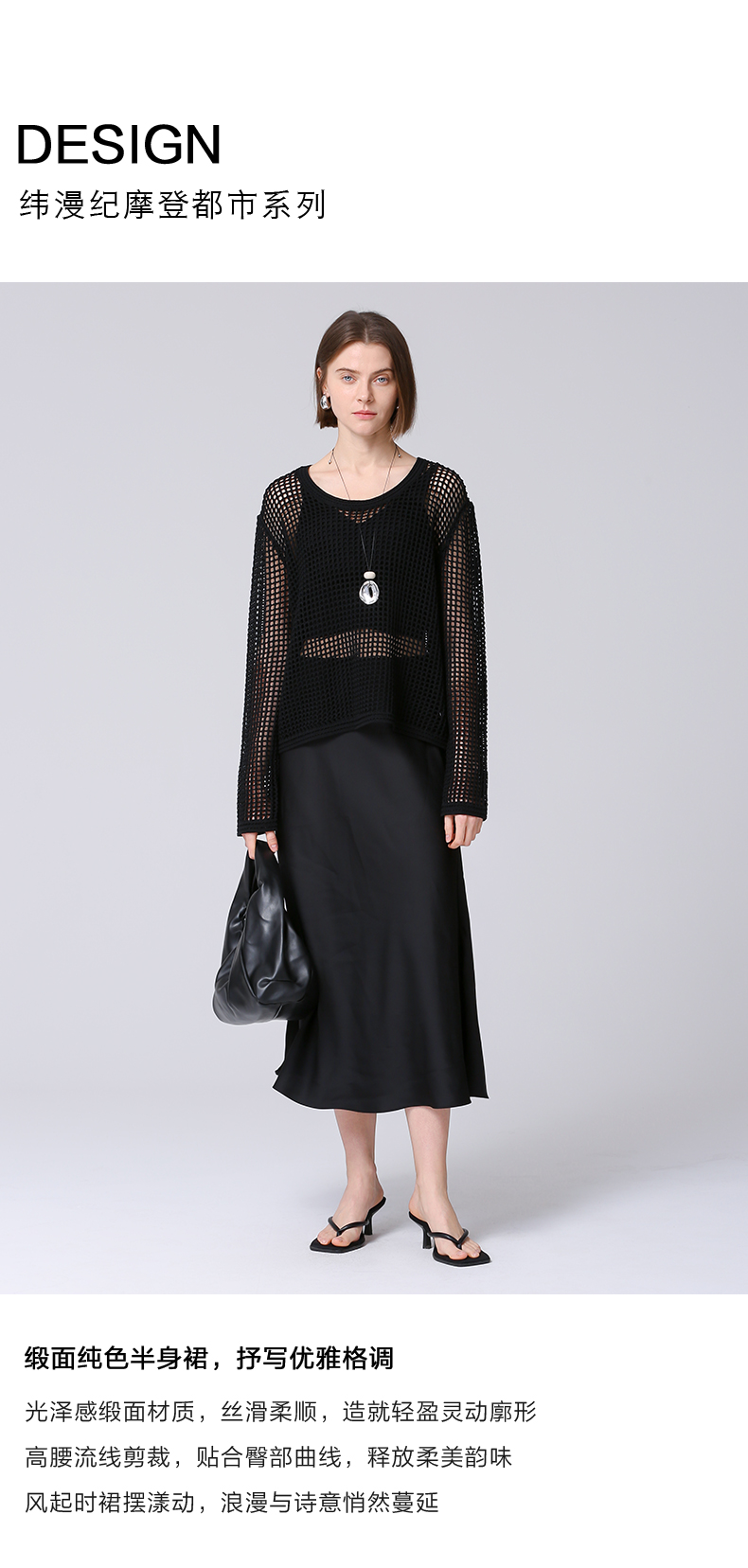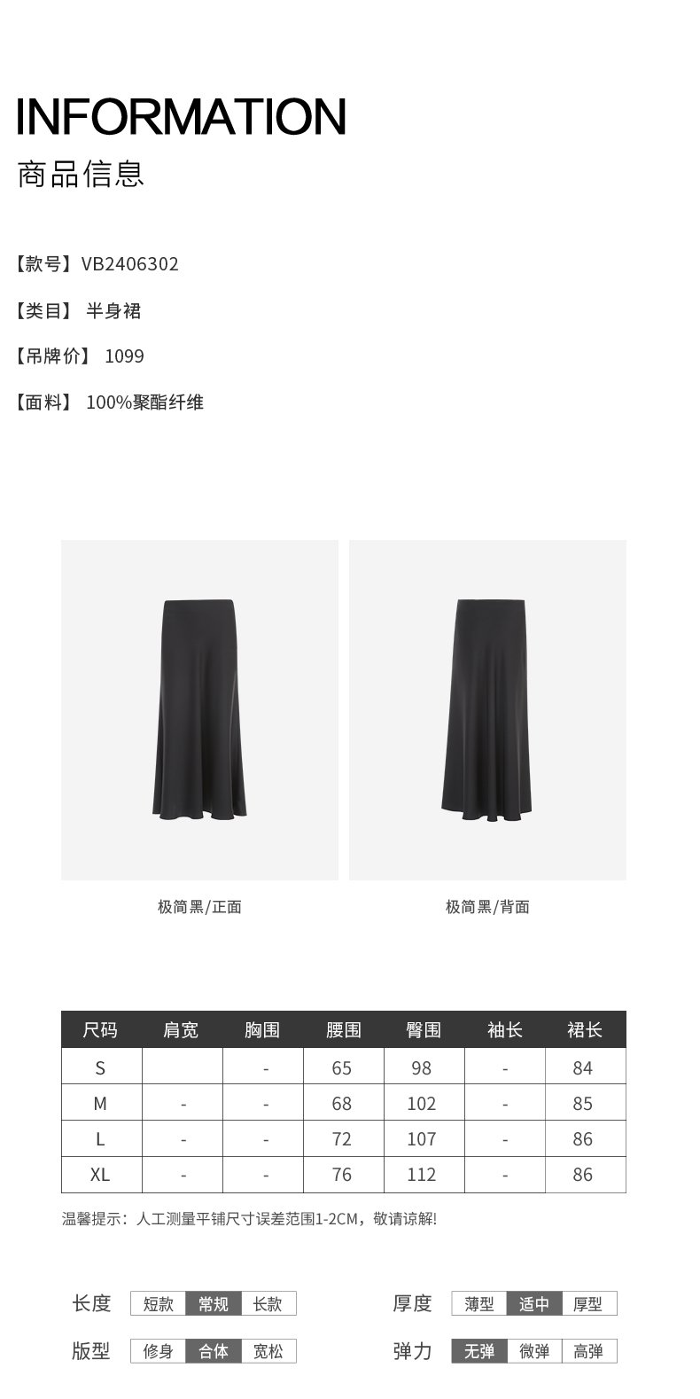 VIMAGE纬漫纪垂坠缎面高腰显瘦高级感百搭纯色半身裙夏季新款VB2406302