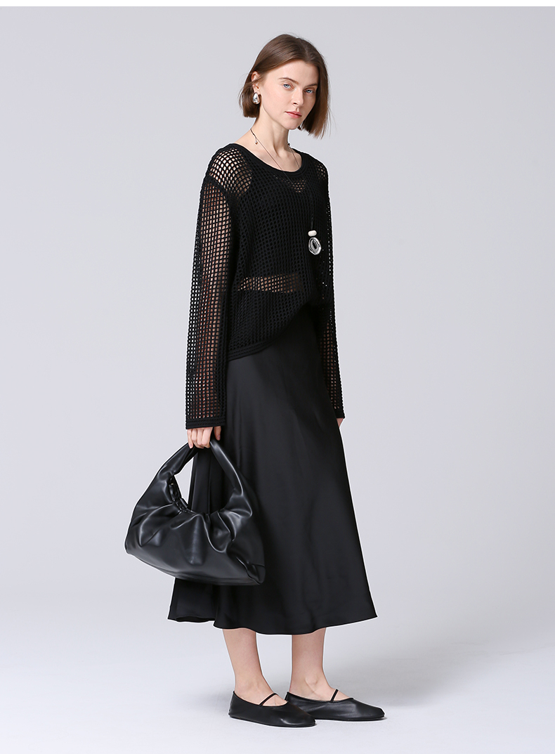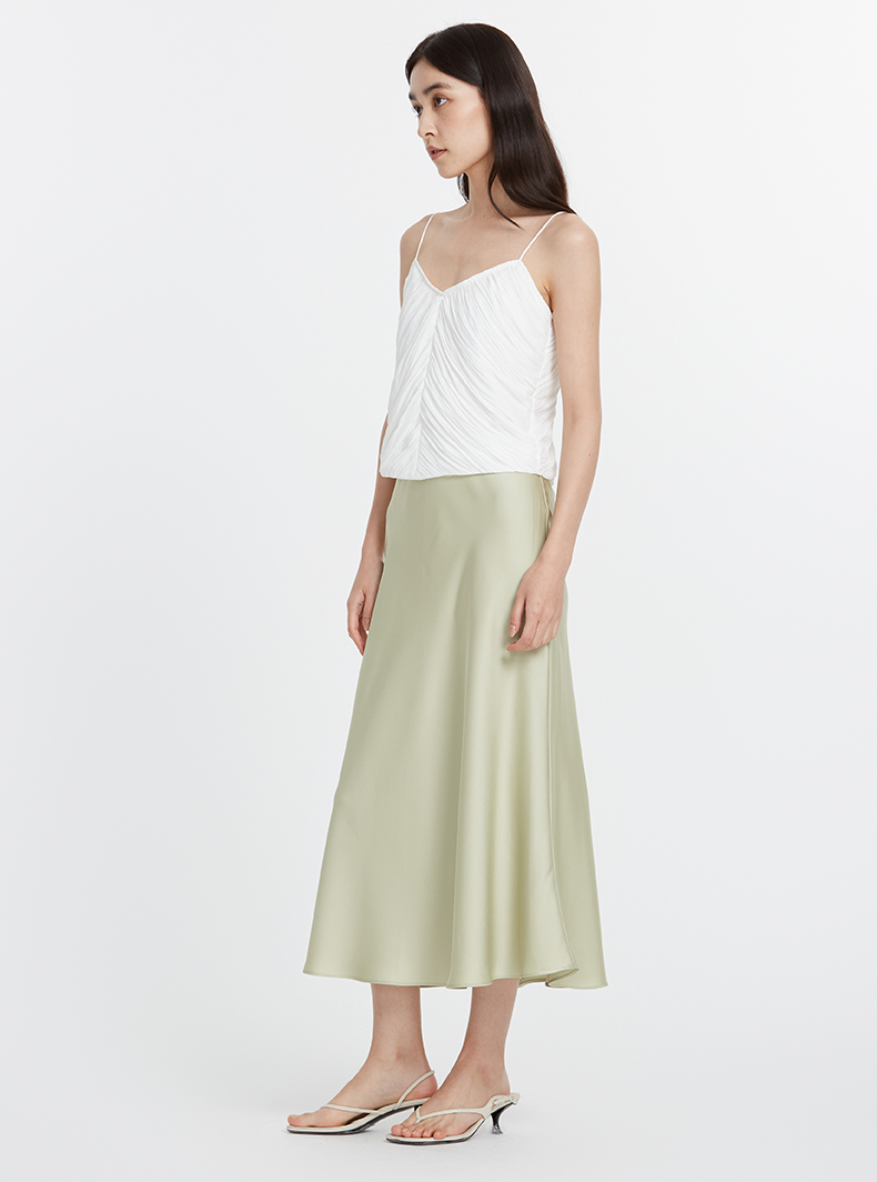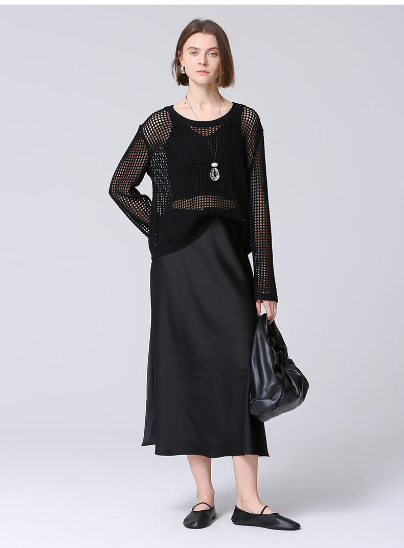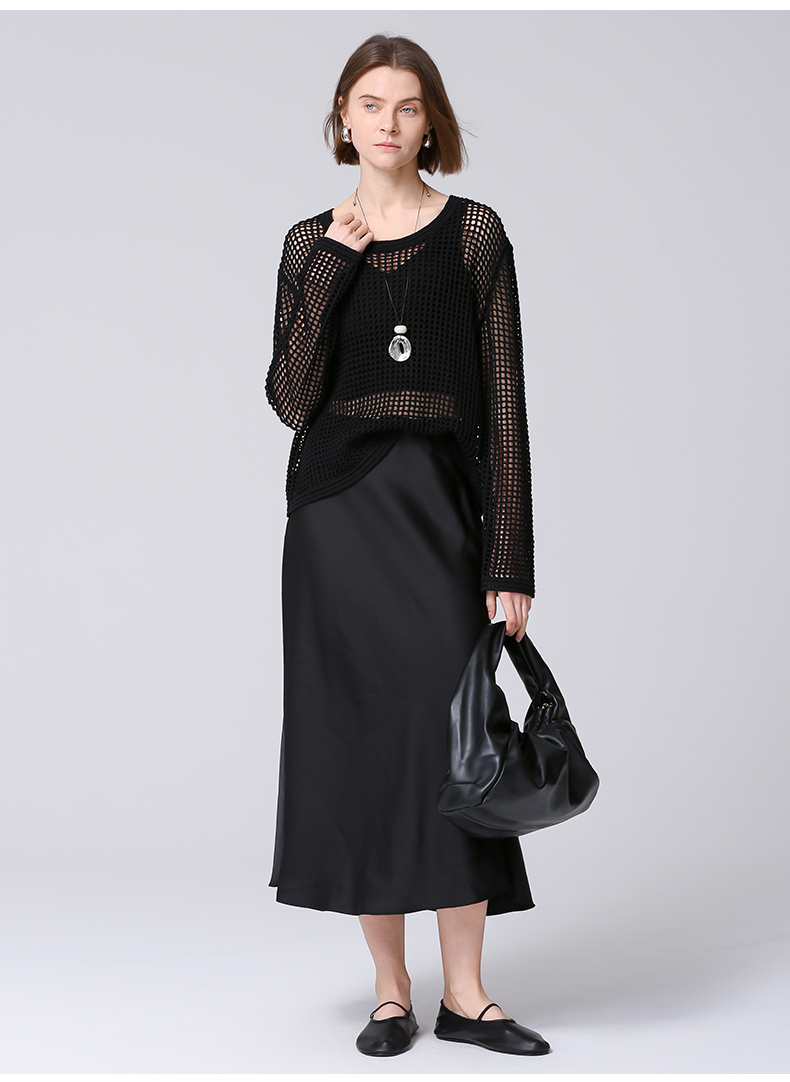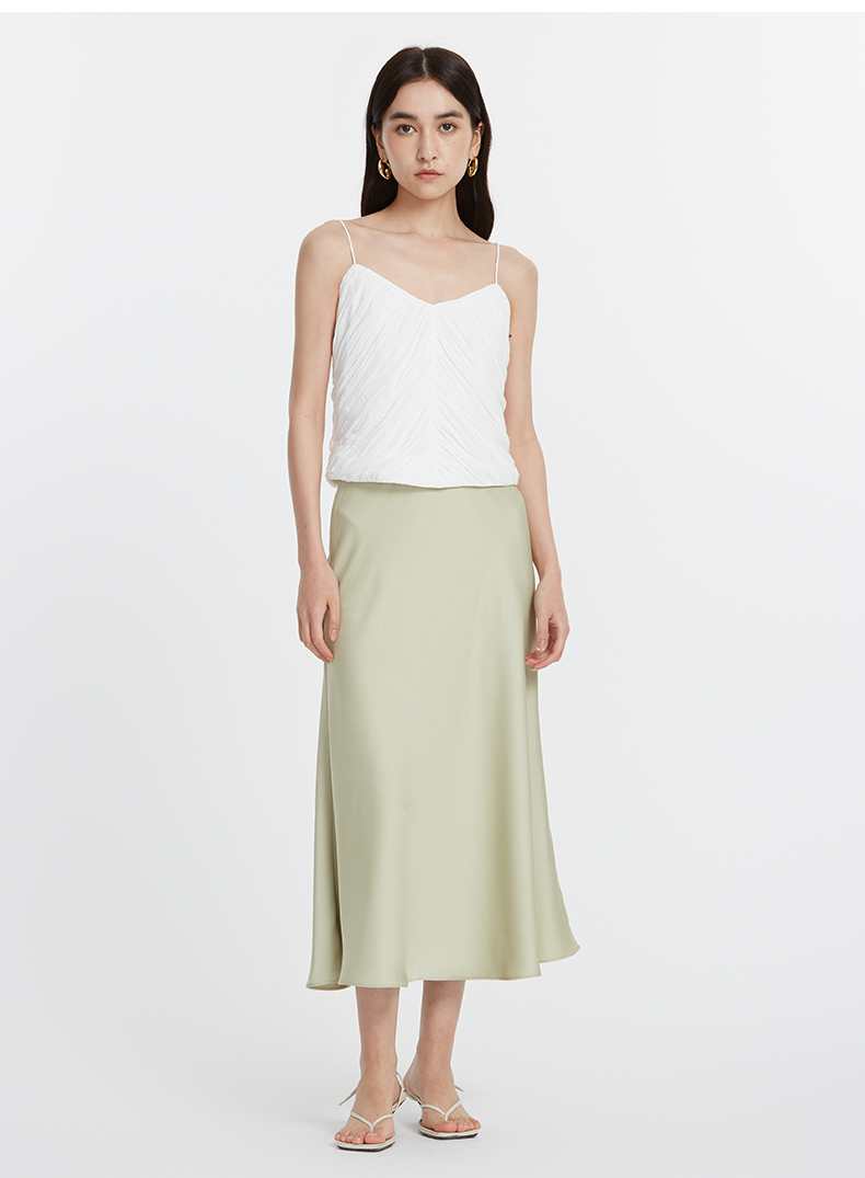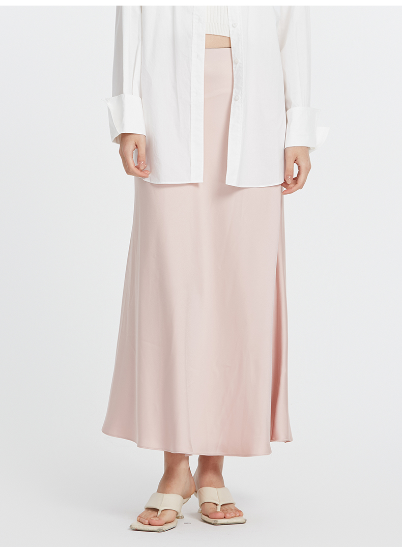 VIMAGE纬漫纪垂坠缎面高腰显瘦高级感百搭纯色半身裙夏季新款VB2406302
